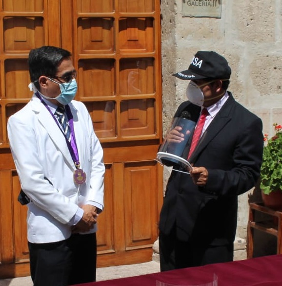 El desarrollo y confección de estos equipos es una muestra del compromiso de la UNSA con la sociedad arequipeña a través de la Oficina de Responsabilidad Social, dirigida por el Dr. Roberto Gamero. Participaron de la entrega los docentes de la Facultad de Medicina, Hugo Rojas Flores y Jorge Ballón Echegaray.