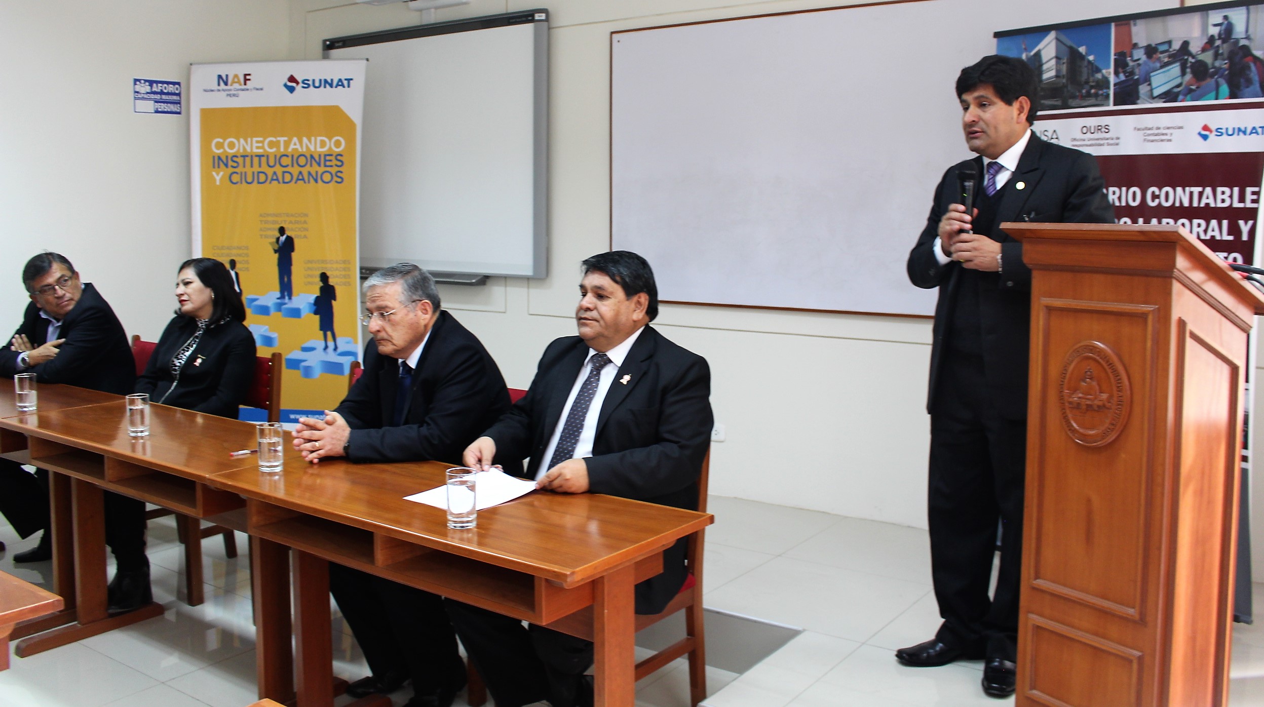 La Universidad Nacional de San Agustín de Arequipa, en alianza estratégica con la Superintendencia Nacional de Aduanas y de Administración Tributaria SUNAT, reaperturó su Núcleo de Asesoramiento Contable y Fiscal NAF, con el propósito de seguir brindando asistencia tributaria gratuita a todos los ciudadanos, especialmente a los pequeños y medianos empresarios.