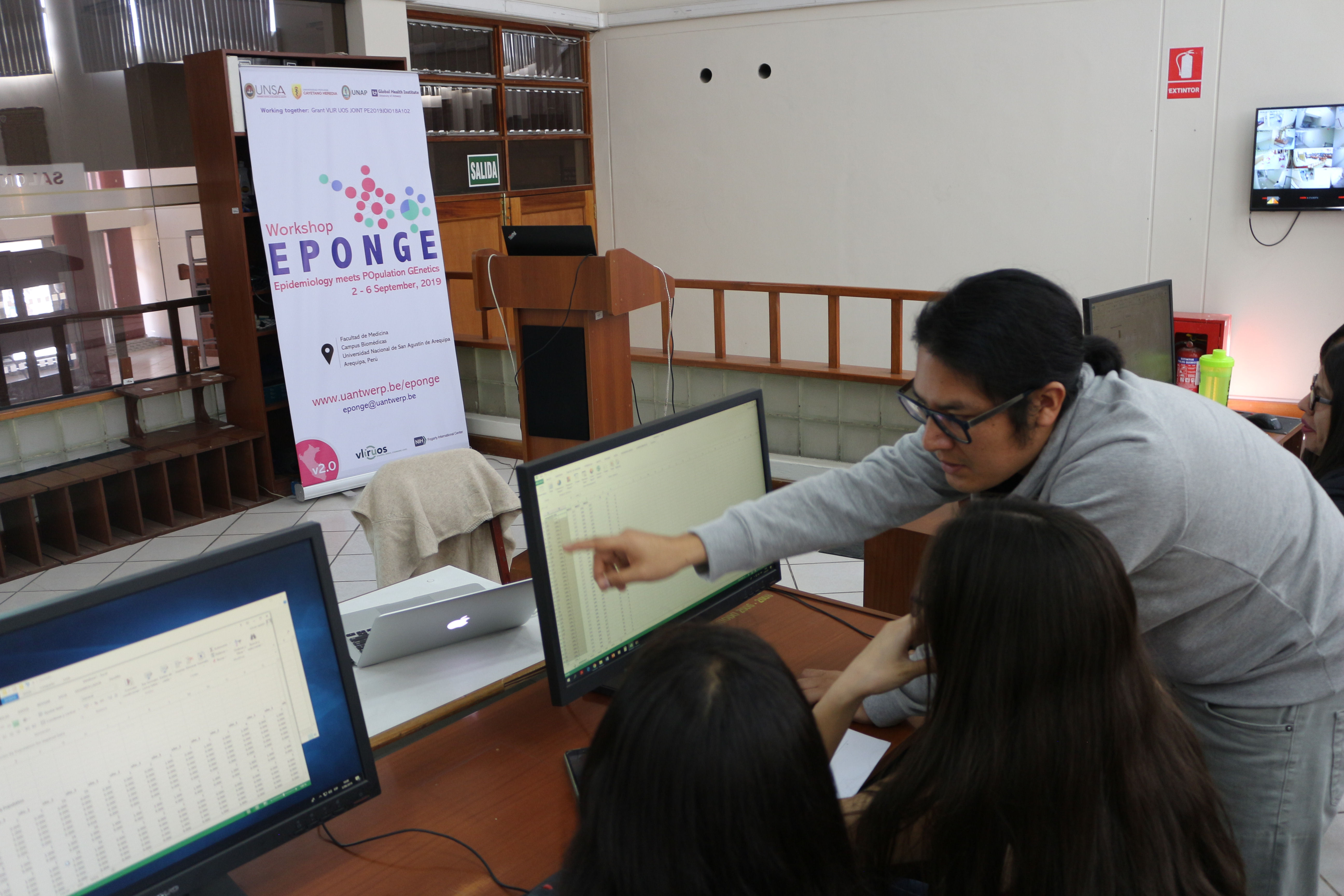 Es importante precisar que este taller EPONGE se da en el marco del proyecto de colaboración entre la Casa Agustina, la Universidad de la Amazonia Peruana, la Universidad Peruana Cayetano Heredia y el Instituto de Salud Global de la Universidad de Amberes (Bélgica): «Mejorando el control de enfermedades infecciosas en el Perú a través del desarrollo de capacidades sostenibles en bioinformática y secuenciación genómica” (proyecto VLIR Joint).