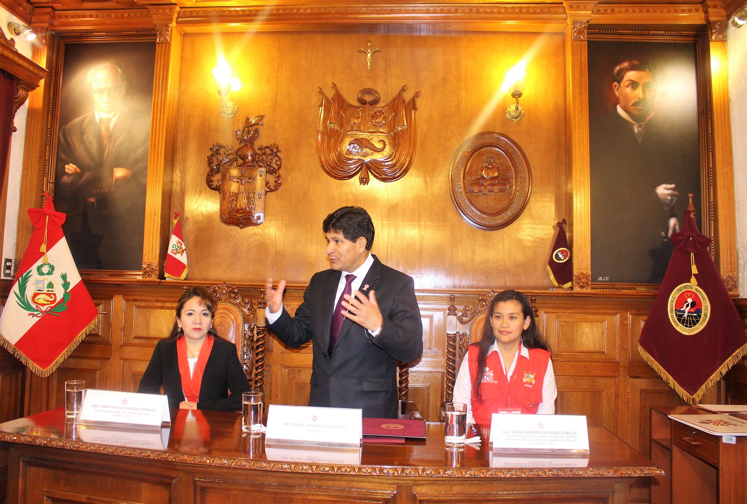 El Rector de la UNSA, Dr. Rohel Sánchez Sánchez, reafirmó el compromiso de la universidad en ser parte activa en todas las acciones que contribuyan positivamente en cimentar, consolidar y validar el sistema democrático del país.