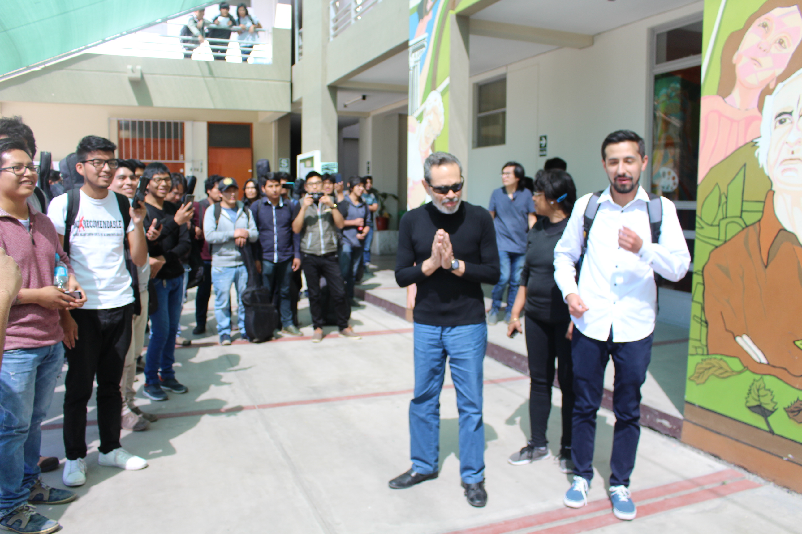 A su llegada al claustro agustino el gran compositor saludo a los estudiantes, docentes y autoridades agustinas a quienes agradeció por sus muestras de afecto y admiración, invitándolos a compartir con él, el Master Class, que se desarrollará hasta el viernes 18 en el Paraninfo Arequipa de la UNAS , para lo cual han llegado estudiantes y músicos de Bolivia y Chile y peruanos de Lima, Piura, Cusco, Puno Lambayeque, Huaraz y otras ciudades de nuestro país.