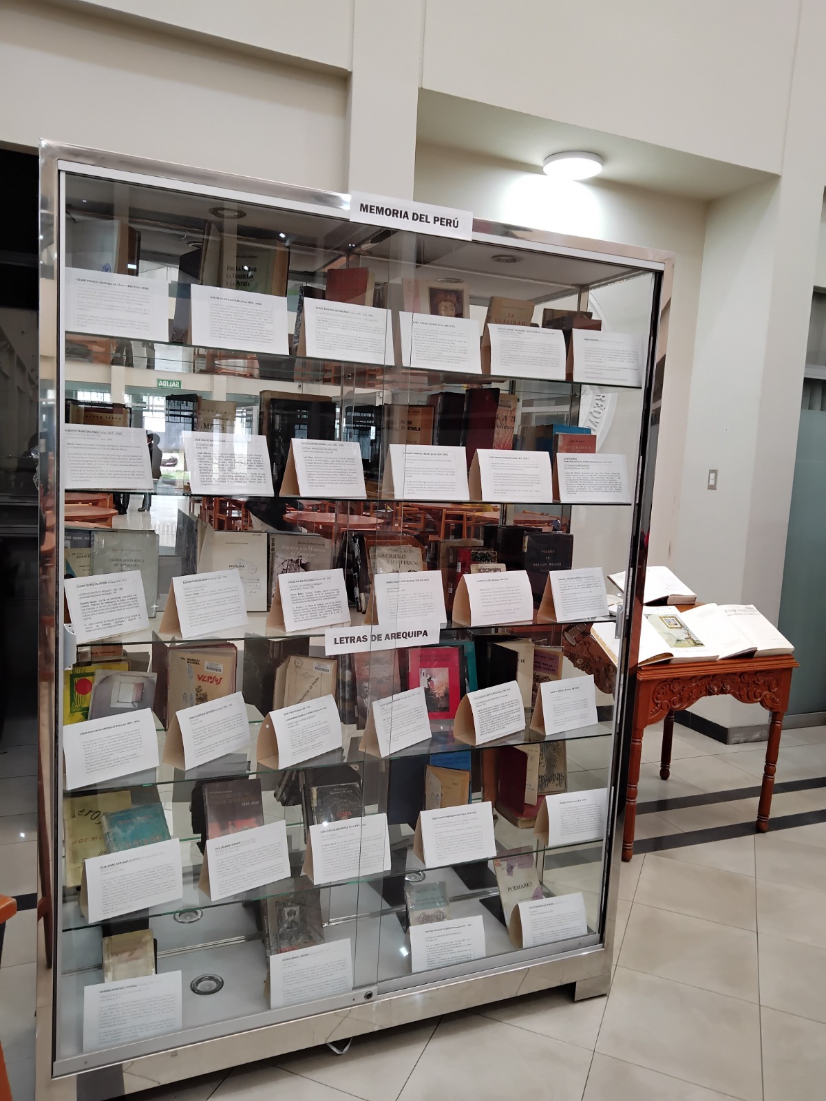 La exposición también presenta los diccionarios históricos de la Real Academia Española, como el Tesoro Lexicográfico de 1931 y el Diccionario de Autoridades, junto a ejemplares de César Vallejo, Alberto Guillén, Rubén Vargas Ugarte, Santos Chocano y Mariano Melgar, este último con la primera edición de Cartas al Perú, impresa en Buenos Aires.