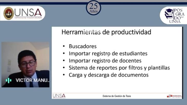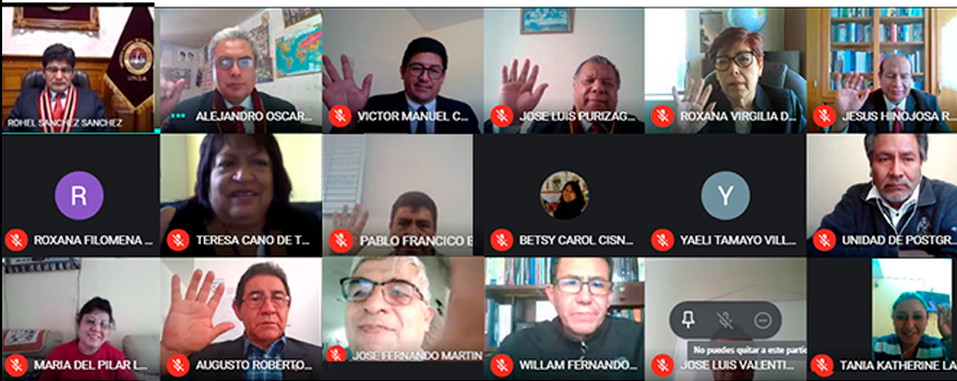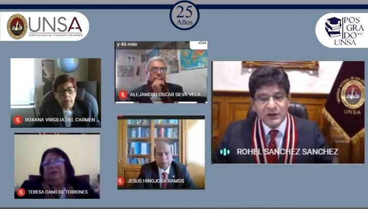 Durante la ceremonia virtual por la Bodas de Plata de la Escuela de Posgrado, estuvieron presentes las autoridades de la UNSA, miembros del Consejo Directivo, directores de las Unidades de posgrado, docentes y estudiantes.
