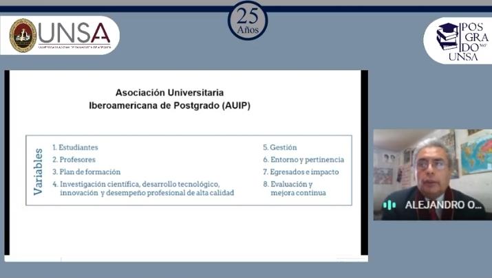 Uno de los objetivos planteados de la Escuela de Posgrado de la Universidad Nacional de San Agustín de Arequipa es formar parte del circuito de acreditación que promueve la Asociación Universitaria Iberoamericana de Posgrado. Así lo dio a conocer el Dr. Alejandro Silva Vela, director de la Escuela de Posgrado, durante la sesión solemne por el vigésimo quinto aniversario.