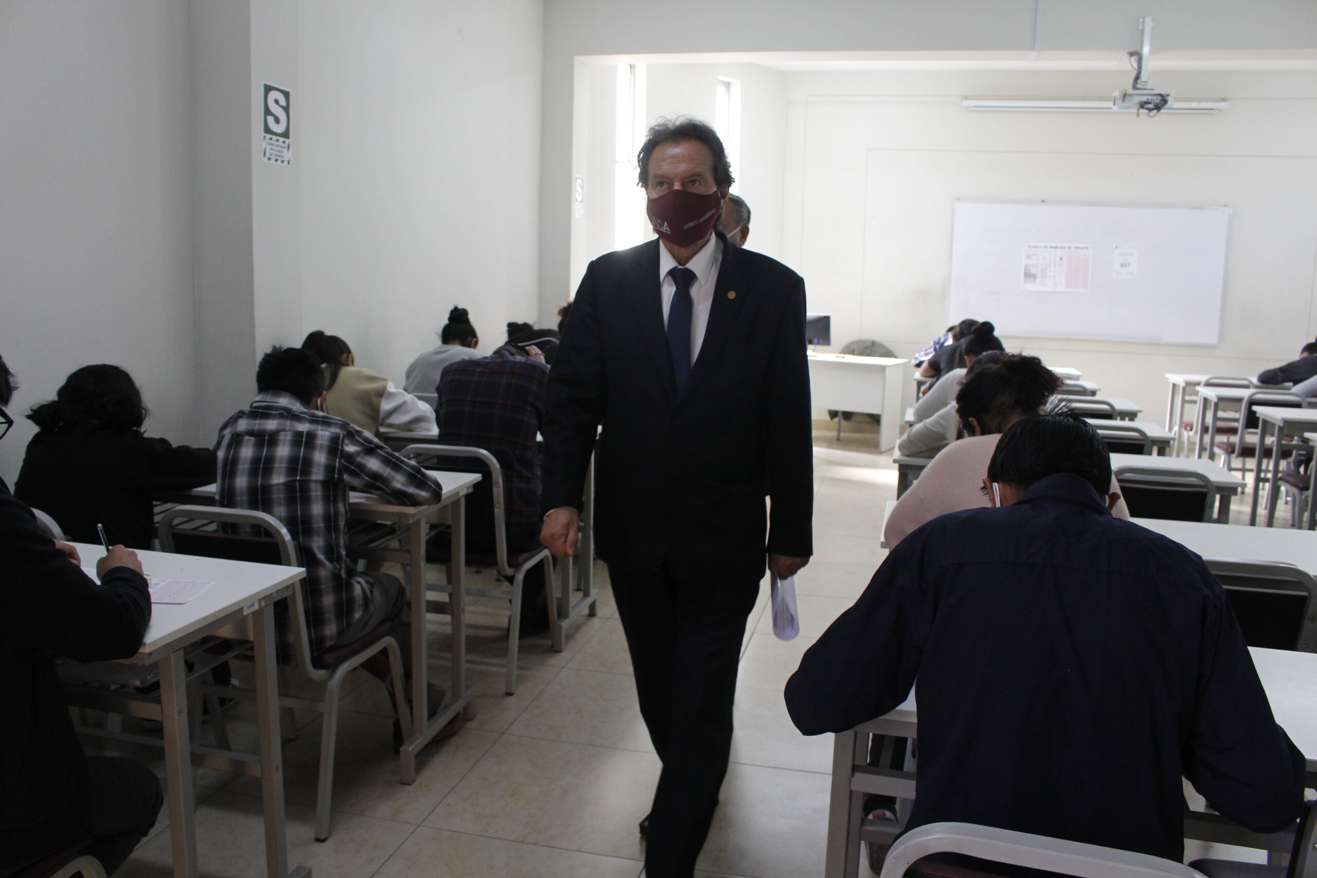 El Vicerrector Académico Dr. Luis Cuadros Paz, estuvo presente por la tarde en la última evaluación garantizando el normal desarrollo de la prueba además de la transparencia en el proceso.