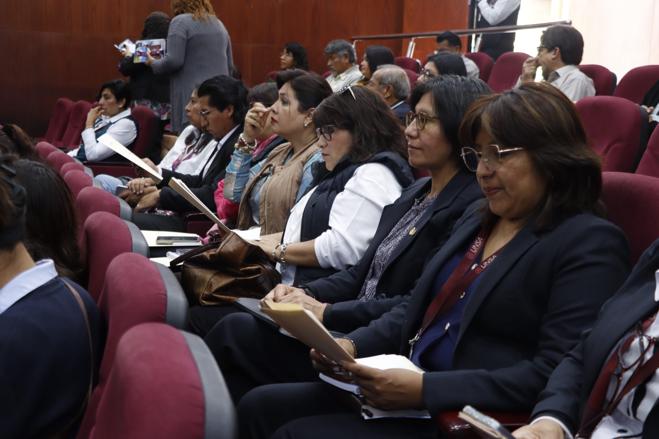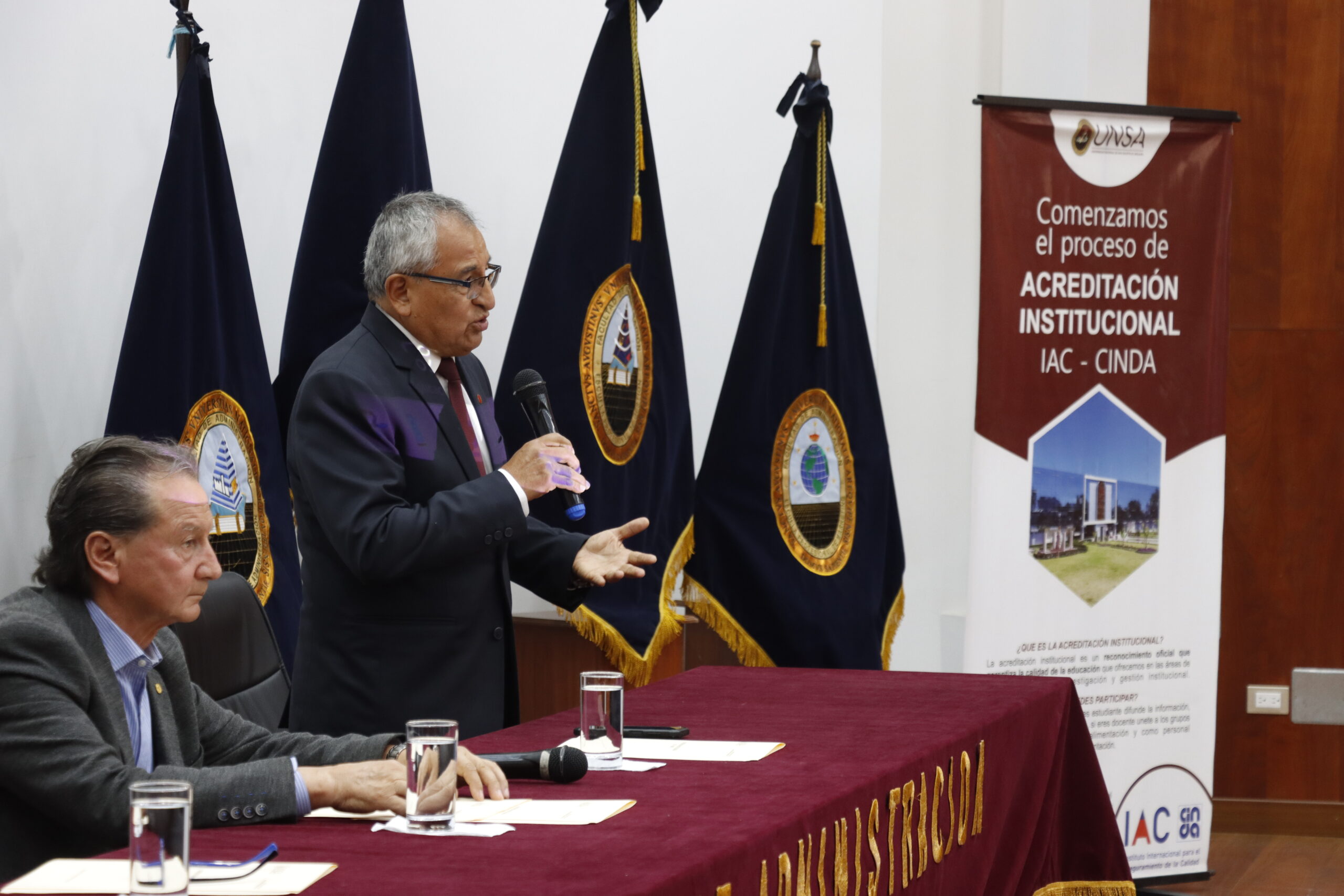 El evento contó con la presencia del vicerrector académico, Dr. Luis Cuadros Paz, y el jefe de la Oficina de Gestión de la Calidad de la UNSA, Dr. Óscar Núñez Tejada, además de decanos, directores de escuela, jefes de oficinas, unidades y direcciones. Durante la jornada, los asistentes recibieron información clave sobre el proceso de acreditación por parte del Dr. Pablo Baeza Virgilio, director académico del IAC-CINDA, y la Dra. Panchiba F. Barrientos, secretaria técnica del mismo organismo.