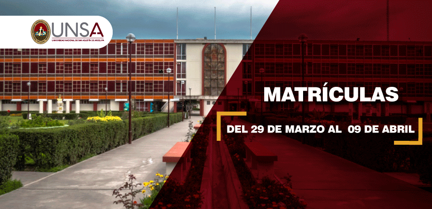 El proceso de matrículas para el año académico 2021 en la Universidad Nacional de San Agustín de Arequipa se desarrollará del 29 de marzo al 09 de abril. Los estudiantes regulares y cachimbos podrán matricularse desde cualquier parte del país al ser el trámite virtual a través de la página web www.unsa.edu.pe.