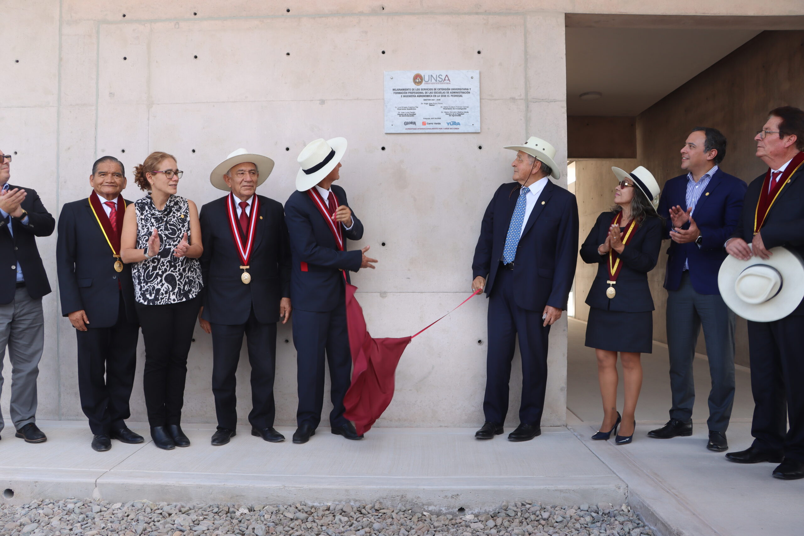 La significativa ceremonia de inauguración congregó a importantes personalidades. Junto al vicerrector académico de la UNSA, Dr. Luis Cuadros Paz, participaron activamente el vicerrector de Investigación, Dr. Henry Polanco Cornejo, la secretaria general, Dra. Maritza Chirinos, Jorge Rodríguez Rodríguez del Grupo Gloria; Enrique Aguilar de Cerro Verde y Úrsula Sánchez de Urbi. Asimismo, los decanos de las facultades directamente beneficiadas, el Dr. Juan Luna Carpio (Administración) y el Dr. Héctor Medina Dávila (Agronomía), fueron testigos de este relevante avance para la educación superior arequipeña.