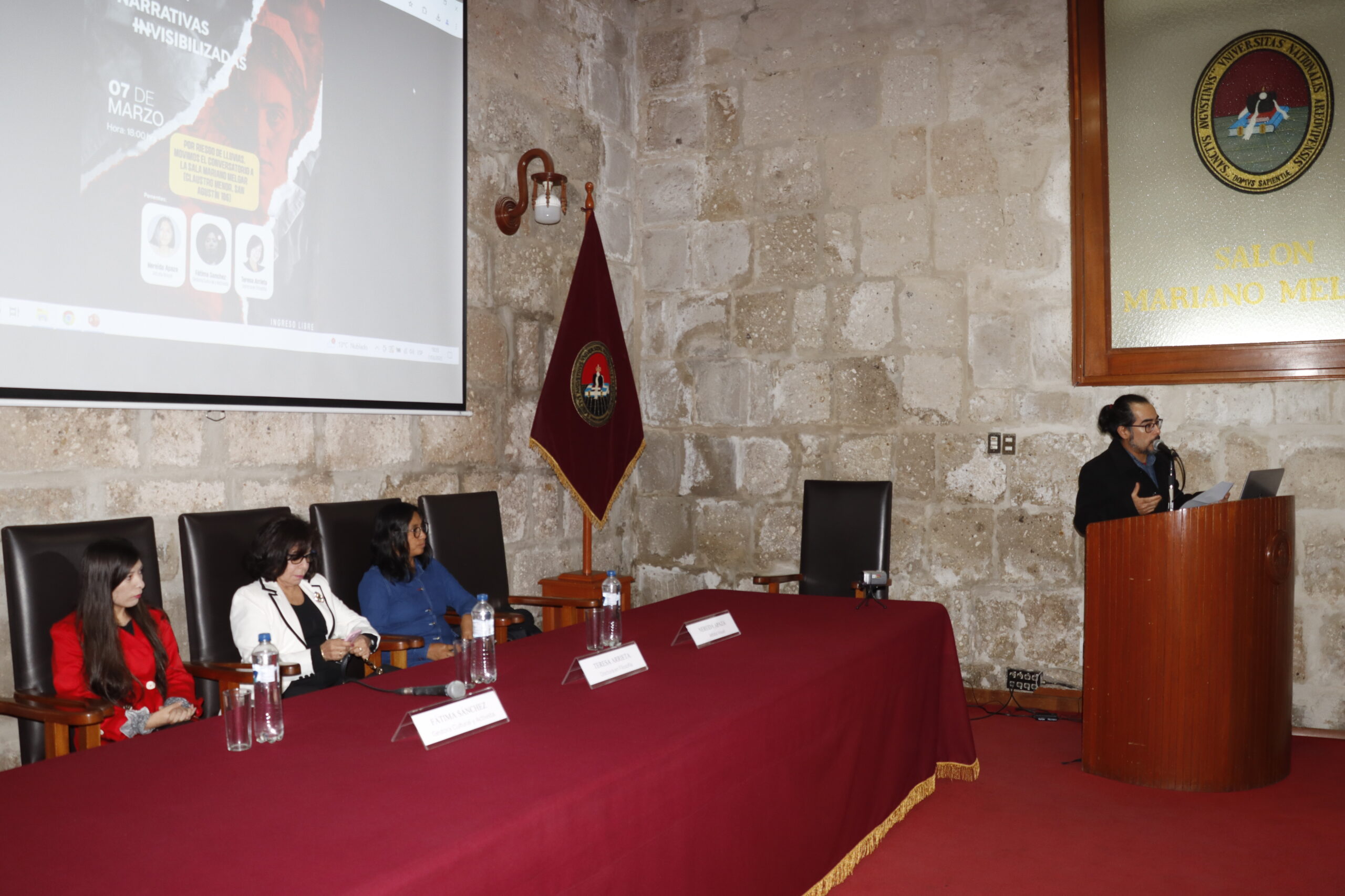 Tres destacadas profesionales compartieron sus experiencias y reflexiones sobre el rol de la mujer en el ámbito artístico, cultural y social de Arequipa en el conversatorio Narrativas Invisibilizadas. El evento, enmarcado en el Día Internacional de la Mujer, reunió a Fátima Sánchez, periodista, activista y gestora cultural; Nereida Apaza, artista visual con una extensa trayectoria; y la Dra. Teresa Arrieta, profesora emérita de Filosofía de la casa agustina.
