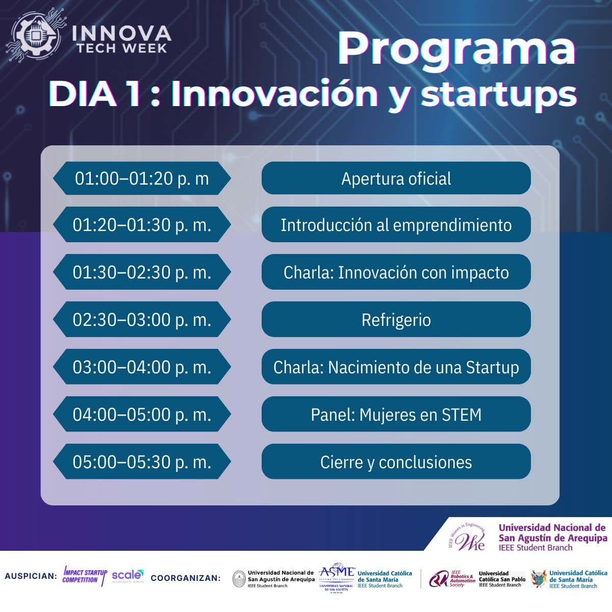 En el marco del primer día del Innova Tech Week 2026, organizada por estudiantes de la Universidad Nacional de San Agustín de Arequipa (UNSA) en coordinación con otras universidades mistianas, el panel «Mujeres en STEM» se consolidó como uno de los ejes centrales de la jornada, con un claro mensaje: las mujeres están al frente de la investigación y el desarrollo tecnológico en el país.