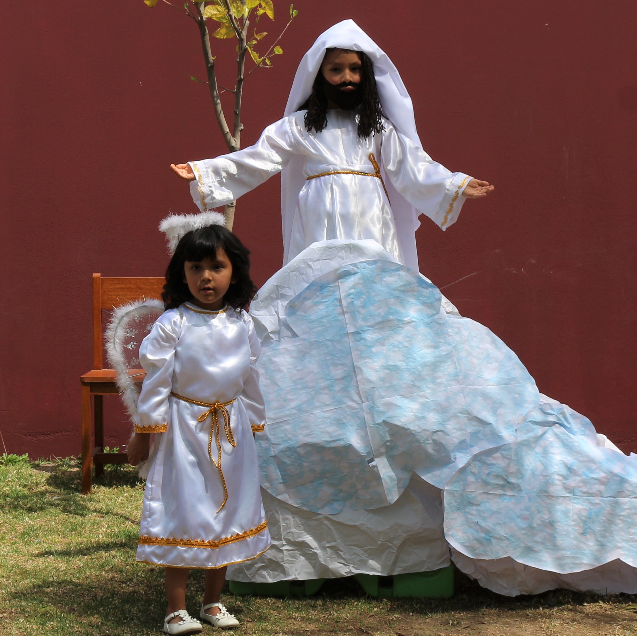 ladrón malo, ángeles y demás personajes, mientras que los niños más pequeños interpretaron a los apóstoles y a la gente del pueblo.