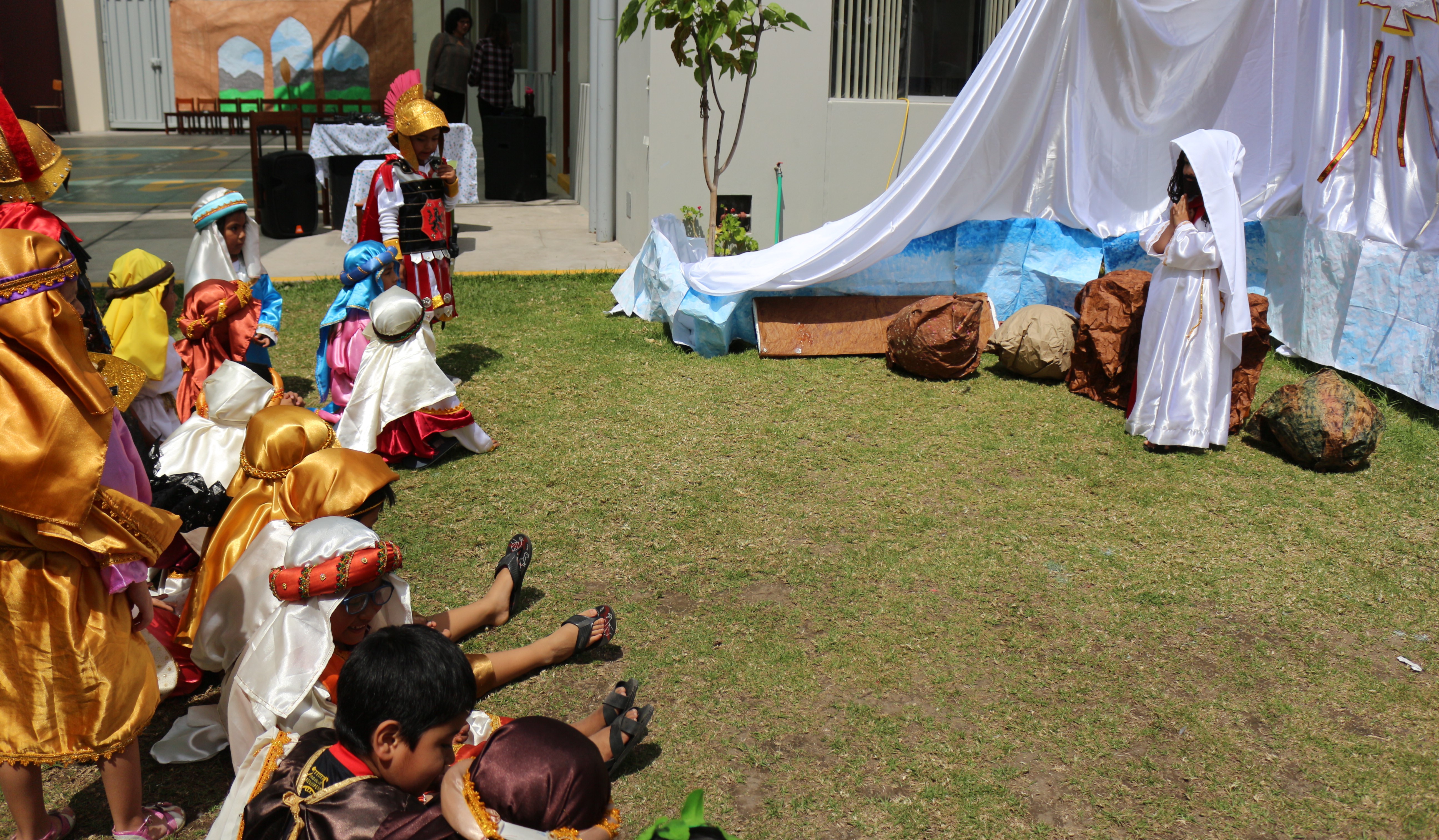 Con la finalidad que aprendan el significado de la Semana Santa, más de 140 niños y niñas entre 1 a 5 años de la Cuna Jardín de la Universidad Nacional de San Agustín de Arequipa escenificaron los pasajes que recrean el martirio de nuestro señor Jesucristo.