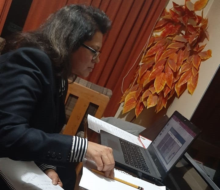 La sustentación del trabajo de investigación se desarrolló de manera pública a través de la fan page de la Escuela de Posgrado de la Casa Agustina, siguiendo los protocolos establecidos por la Unidad de Posgrado de la Facultad de Ciencias Naturales y Formales que dirige la Dra. María Elena Vargas Nieto; la comunicación sincrónica permitió coincidir en tiempo real y espacio virtual a los miembros del Jurado Evaluador la aspirante a Doctora.