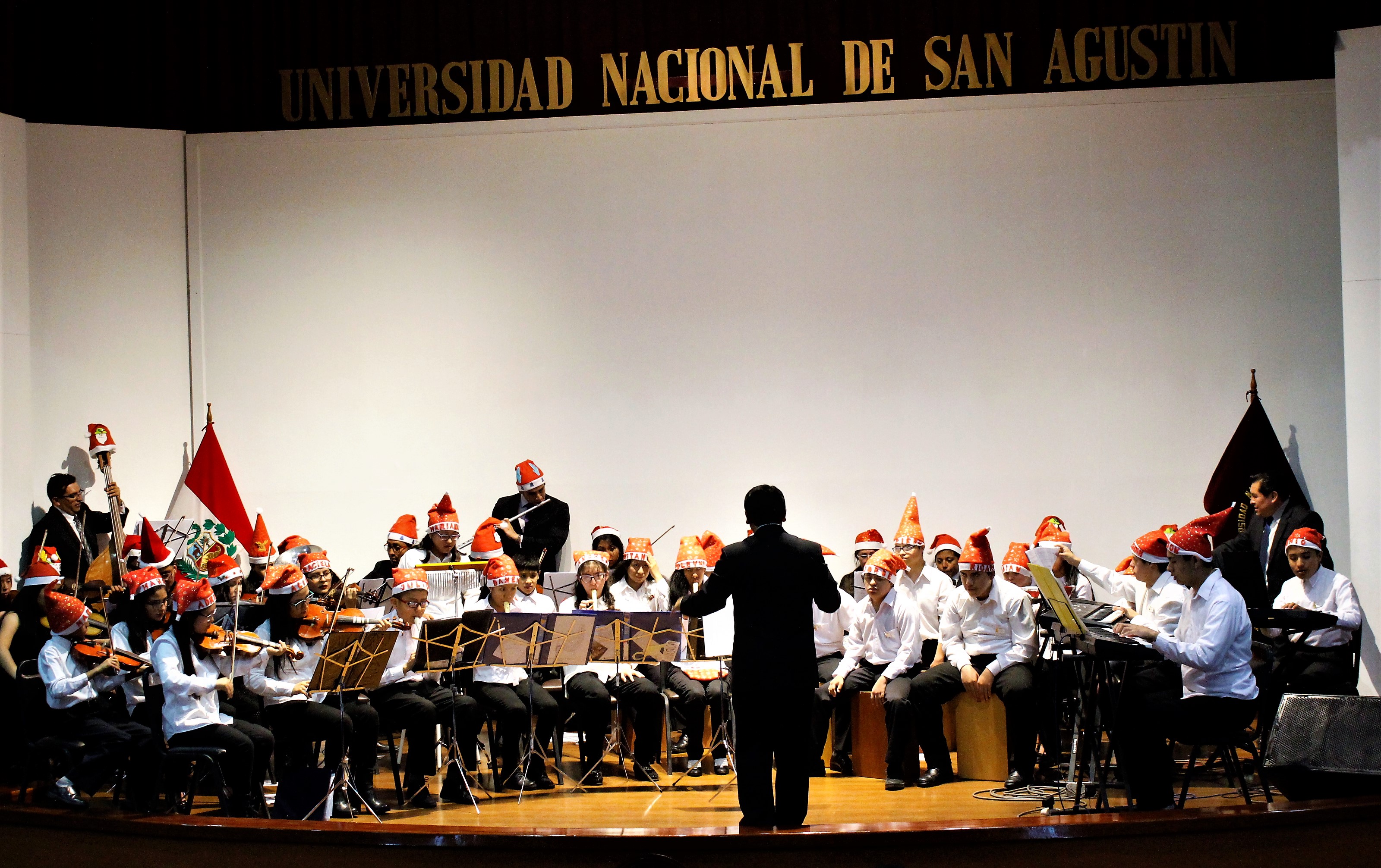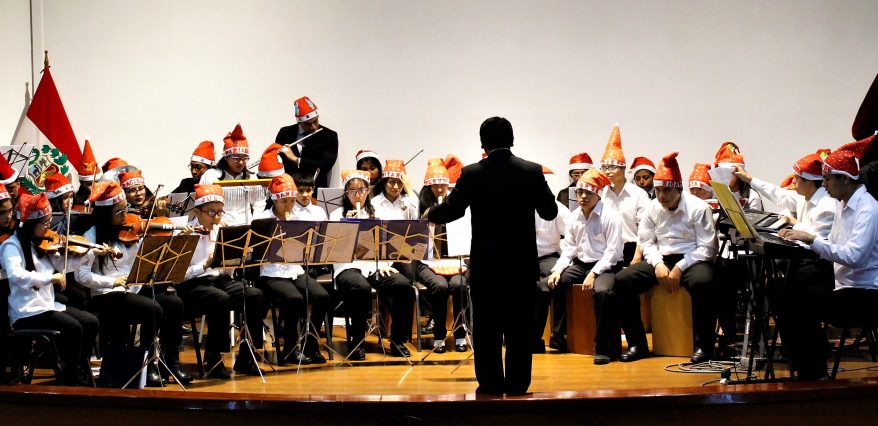 El programa musical incluyó instrumentos de teclado, percusión y cuerda y el repertorio constó de la Marcha imperial, Star Wars, Mamma mia, Bésame Mucho, Zazaza, Fiesta Aymara, Carnaval de Arequipa, Himno a la Alegría, Navidad, Noche de Paz, Campana sobre campana, Navidad oh navidad, Deck the hall y Hark! The herald angels sing.
