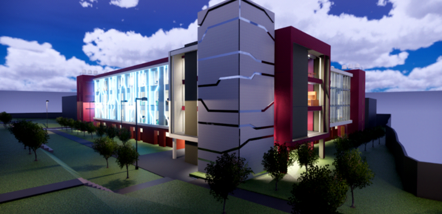De esta forma la Subdirección de Infraestructura realiza los trabajos de construcción en un área que supera los 3,600 metros cuadrados y que tendrá una peculiar forma de L, este diseño permitirá a las escuelas de Ciencia de la Computación e Ingeniería de Telecomunicaciones mantenerse articuladas mediante pasadizos y un hall, en el edificio de cuatro pisos. Así mismo la moderna construcción contará con laboratorios, aulas, salas de investigación, sala de profesores, tutoría, dirección entre otros ambientes.