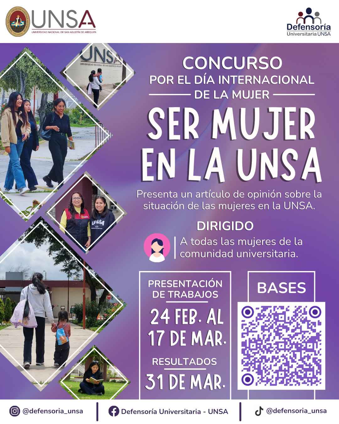 Cada 8 de marzo, el Día Internacional de la Mujer conmemora la lucha histórica por la igualdad. En este marco, la UNSA reafirma su compromiso con la equidad y el reconocimiento de las voces femeninas dentro de su comunidad. A través de este concurso, se abre un espacio de diálogo que busca transformar la institución desde la mirada de sus propias integrantes.