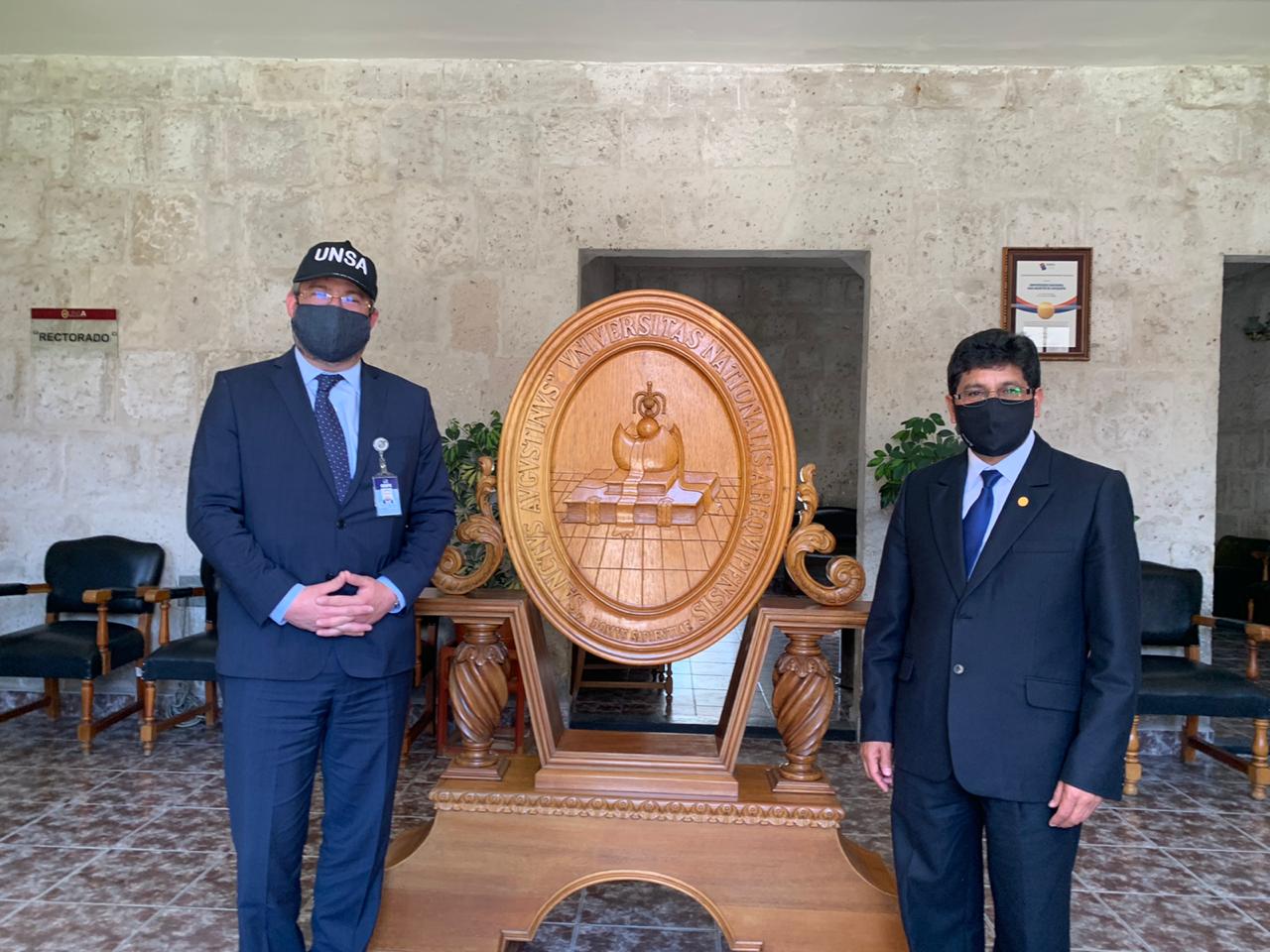 El Dr. Rohel Sánchez Sánchez comprometió todo el apoyo de la UNSA para la realización del proceso electoral, no solo con los ambientes solicitados, también poniendo a disposición los medios de comunicación de la Casa Agustina para ayudar en la difusión de las recomendaciones que emita el ente encargado de las elecciones.