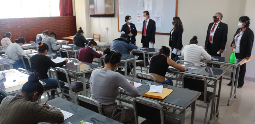 «En estos tiempos de pandemia estamos desarrollando los exámenes de manera presencial y en instalaciones establecidas, la nueva orientación es que vamos a procurar que todos los exámenes sean en aulas para que los postulantes gocen de la comodidad suficiente para que su rendimiento sea óptimo y no exista alguna excusa que disminuya sus posibilidades» señaló el Vicerrector Académico, Dr. Luis Cuadros Paz quien junto a la Secretaria General, Dra. Maritza Chirinos, decanos y miembros de la Comisión de Admisión inspeccionaron cada una de las aulas donde se desarrolló este examen, que registró un nivel de ausentismo del 4%.