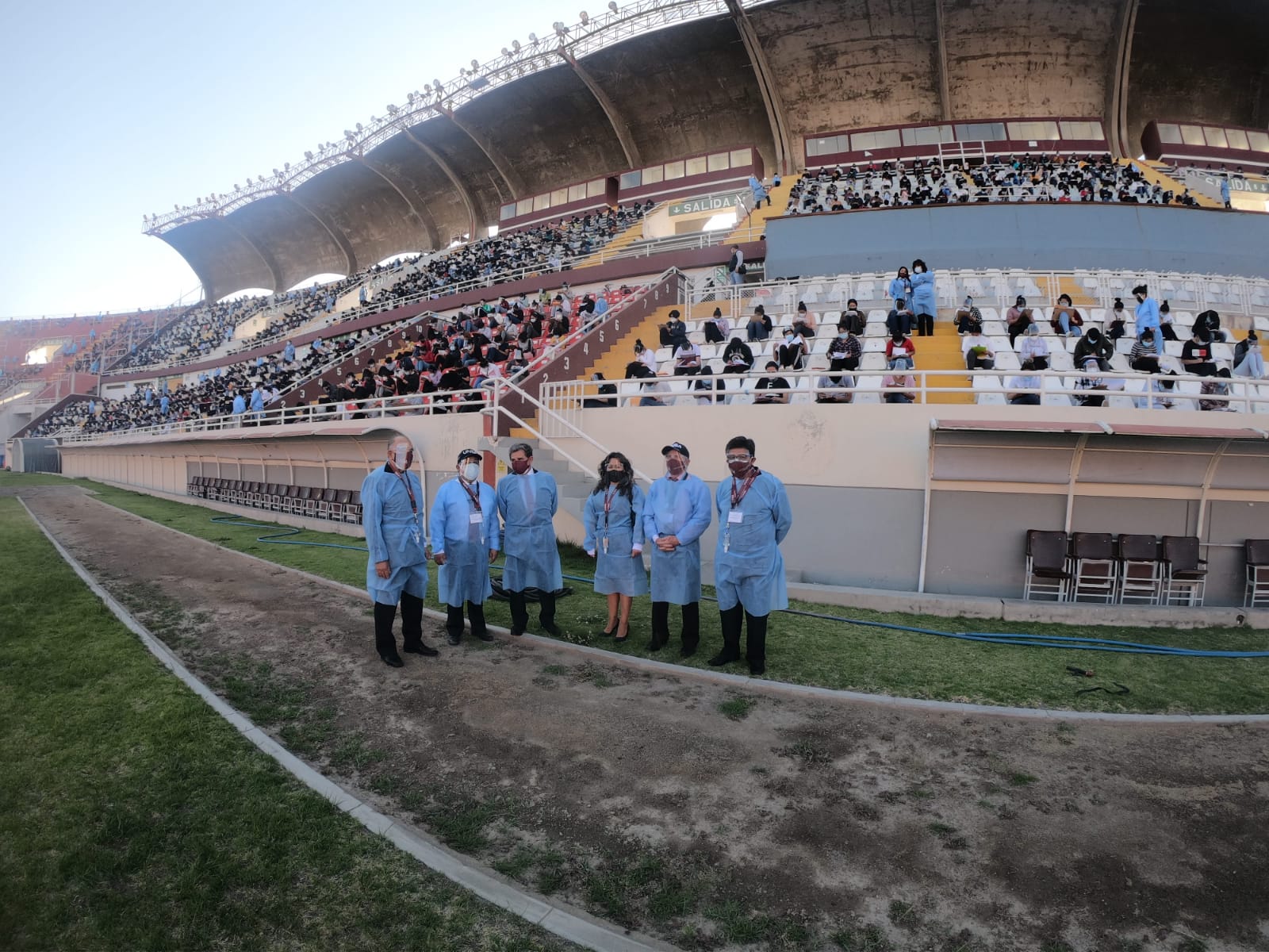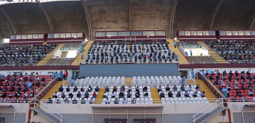 El examen se realiza en las graderías del Estadio de la UNSA respetando el distanciamiento social.