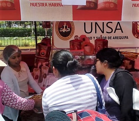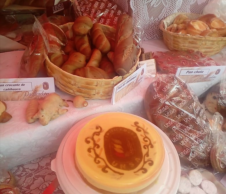 Pan dulce con zapallo, panes crocantes con cañihuaco, mil hojas de quinua con majar de lúcuma, torta de aguaymanto, las tradicionales wuawuas, el tradicional panetón UNSA y panetón de quinua, entre otros, fueron los productos que presentó la panificadora para el deleite de los asistentes al festival que se desarrolló el pasado 20 de octubre en la plaza Mayta Capac del distrito de Miraflores.