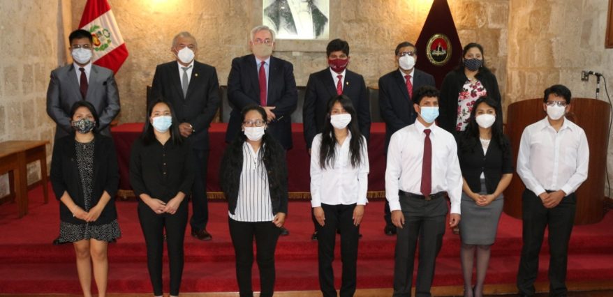 El rector de la Universidad Nacional de San Agustín de Arequipa (UNSA), Dr. Rohel Sánchez Sánchez, entregó los premios a los estudiantes agustinos ganadores del Primer Concurso Regional de trabajos de Investigación “Minería y agricultura en convivencia estratégica para generar desarrollo en los pueblos del Perú”.