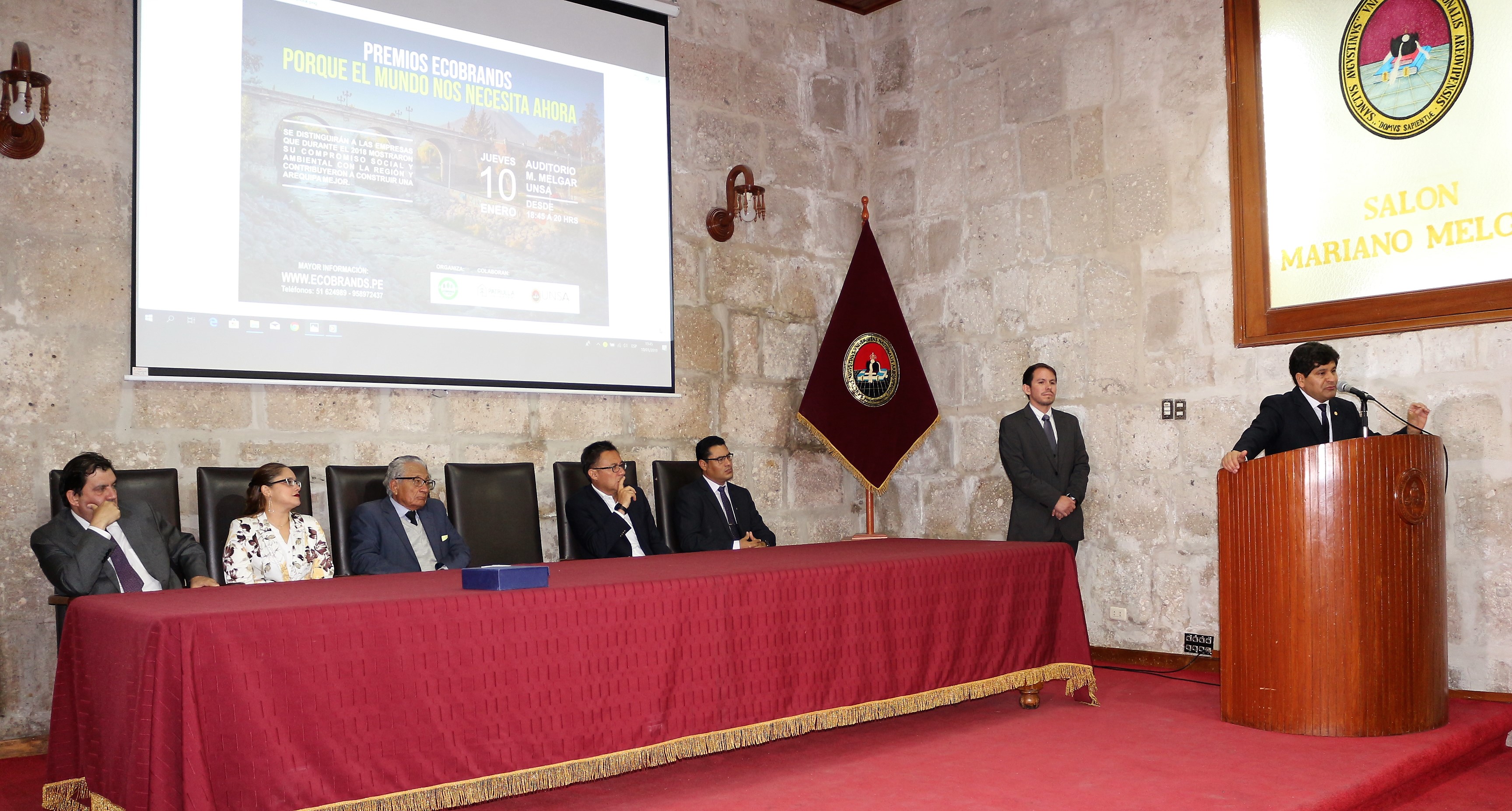 “Estamos comprometidos con la conservación de los recursos naturales, protección y preservación de medio ambiente y para ello cuenten con la UNSA, con su infraestructura, con sus recursos y con la política de gestión desde el rectorado”, mencionó la máxima autoridad agustina, quién agradeció a EcoBrands y a sus directivos nacionales e internacionales por el premio otorgado; a la vez que felicito a las demás empresas e instituciones premiadas.