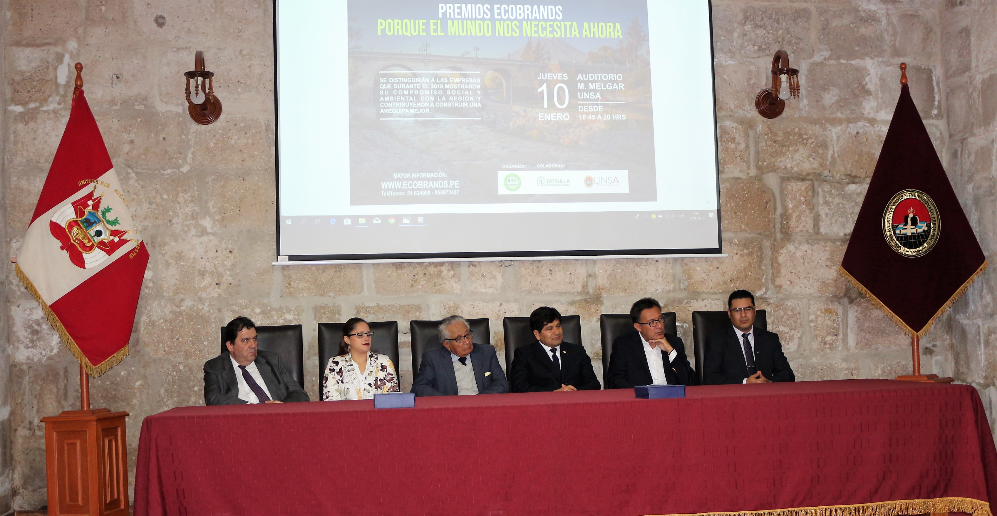 La Universidad Nacional de San Agustín de Arequipa (UNSA) recibió el máximo galardón otorgado en la categoría “Implementación exitosa de buenas prácticas de cuidado ambiental” en los premios EcoBrands Perú 2018: “Porque el Mundo nos necesita ahora”.