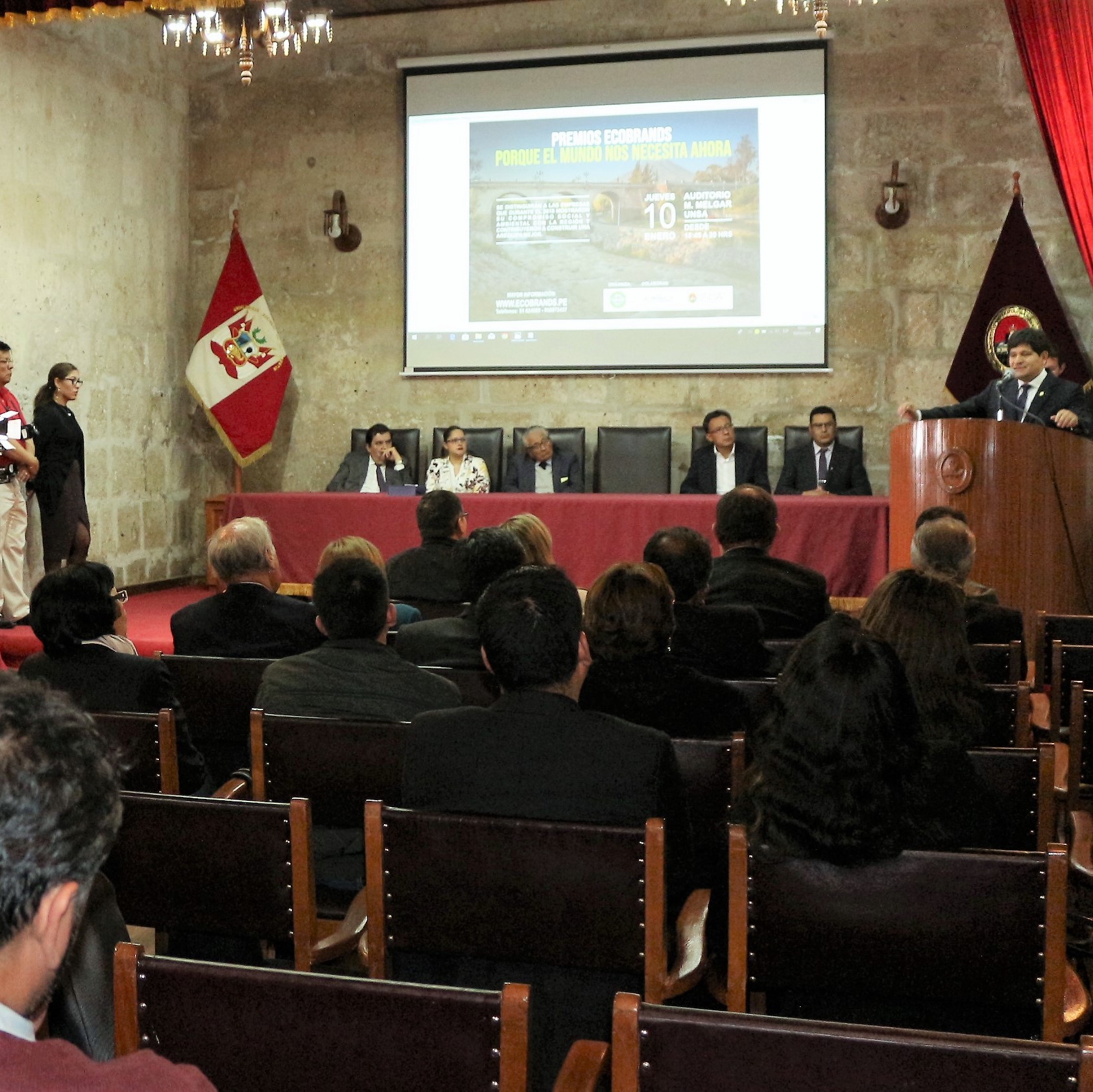 “Estamos comprometidos con la conservación de los recursos naturales, protección y preservación de medio ambiente y para ello cuenten con la UNSA, con su infraestructura, con sus recursos y con la política de gestión desde el rectorado”, mencionó la máxima autoridad agustina, quién agradeció a EcoBrands y a sus directivos nacionales e internacionales por el premio otorgado; a la vez que felicito a las demás empresas e instituciones premiadas.