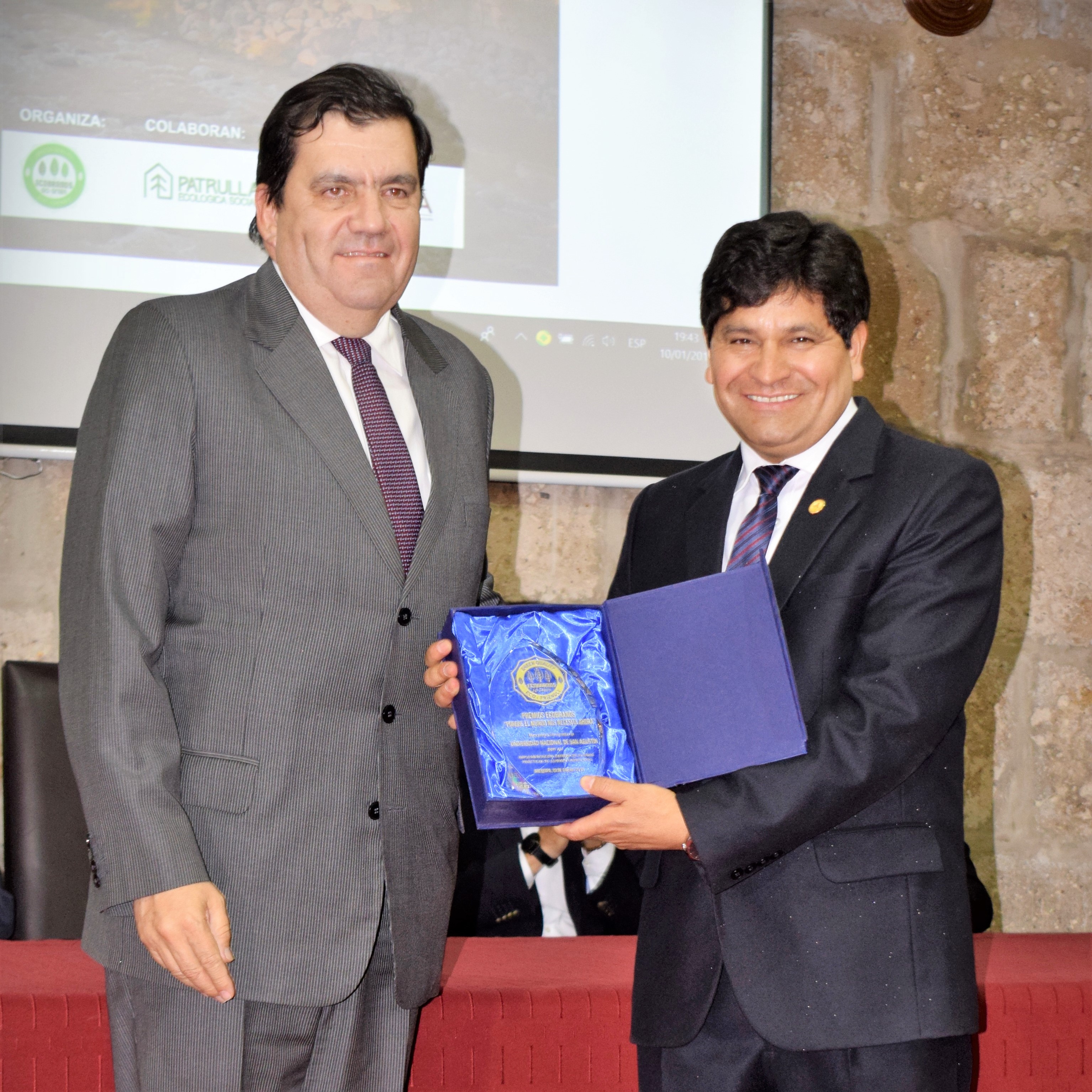 En una ceremonia a la que asistieron autoridades, empresarios y sociedad civil, el Dr. Rohel Sánchez Sánchez, rector de la UNSA, recibió este merecido reconocimiento a la política de gestión ambiental de cero contaminaciones y buenas prácticas ambientales, que se están desarrollando con gran éxito en la casa agustina.