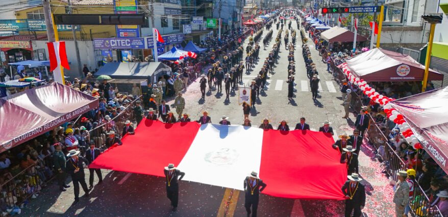 La Universidad Nacional de San Agustín de Arequipa (UNSA) participó este sábado 26 de julio en el desfile por Fiestas Patrias, con motivo de los 204 años de independencia del Perú. Autoridades, estudiantes y la Banda Sinfónica de la casa agustina marcharon junto a las Fuerzas Armadas, el Gobierno Regional de Arequipa, colegios y demás instituciones.