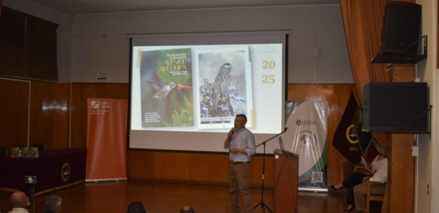 Una valiosa obra científica, fotográfica y cultural que pone en valor la extraordinaria diversidad de aves presentes en nuestra región fue presentada al público en la Universidad Nacional de San Agustín de Arequipa (UNSA). El libro, titulado De picaflores a cóndores: Aves de Arequipa, contó con el respaldo del Instituto de Investigación de Ciencia y Gestión Ambiental (ICIGA).