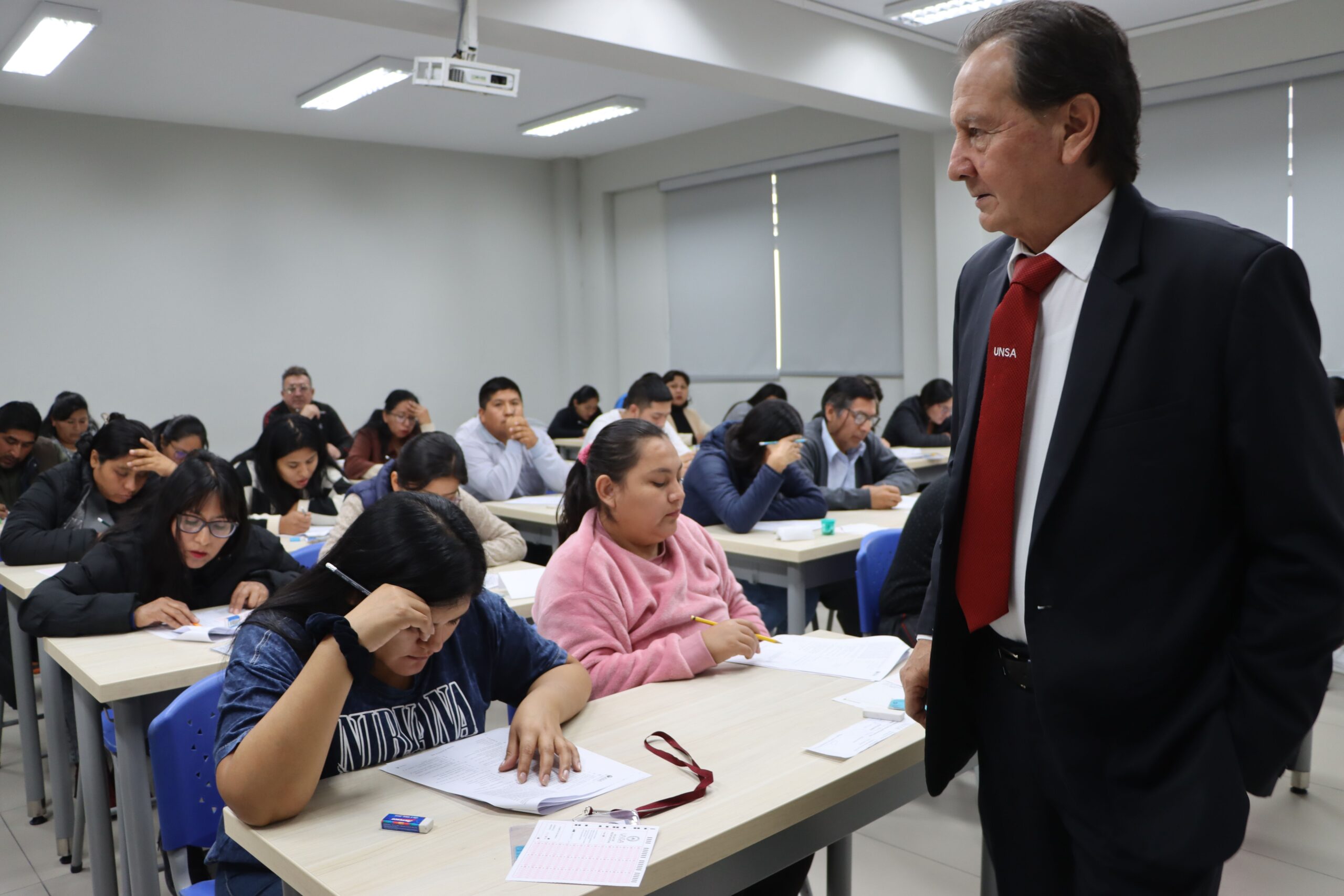 El vicerrector académico, Dr. Luis Cuadros Paz, felicitó a los postulantes por su alta participación, resaltando que obtener una segunda especialidad incrementa su competitividad en el mercado laboral. Acompañaron al vicerrector, el Dr. Alberto Indacochea, presidente del CESE, y el Dr. Esequiel Collado Cárdenas, director de Admisión.
