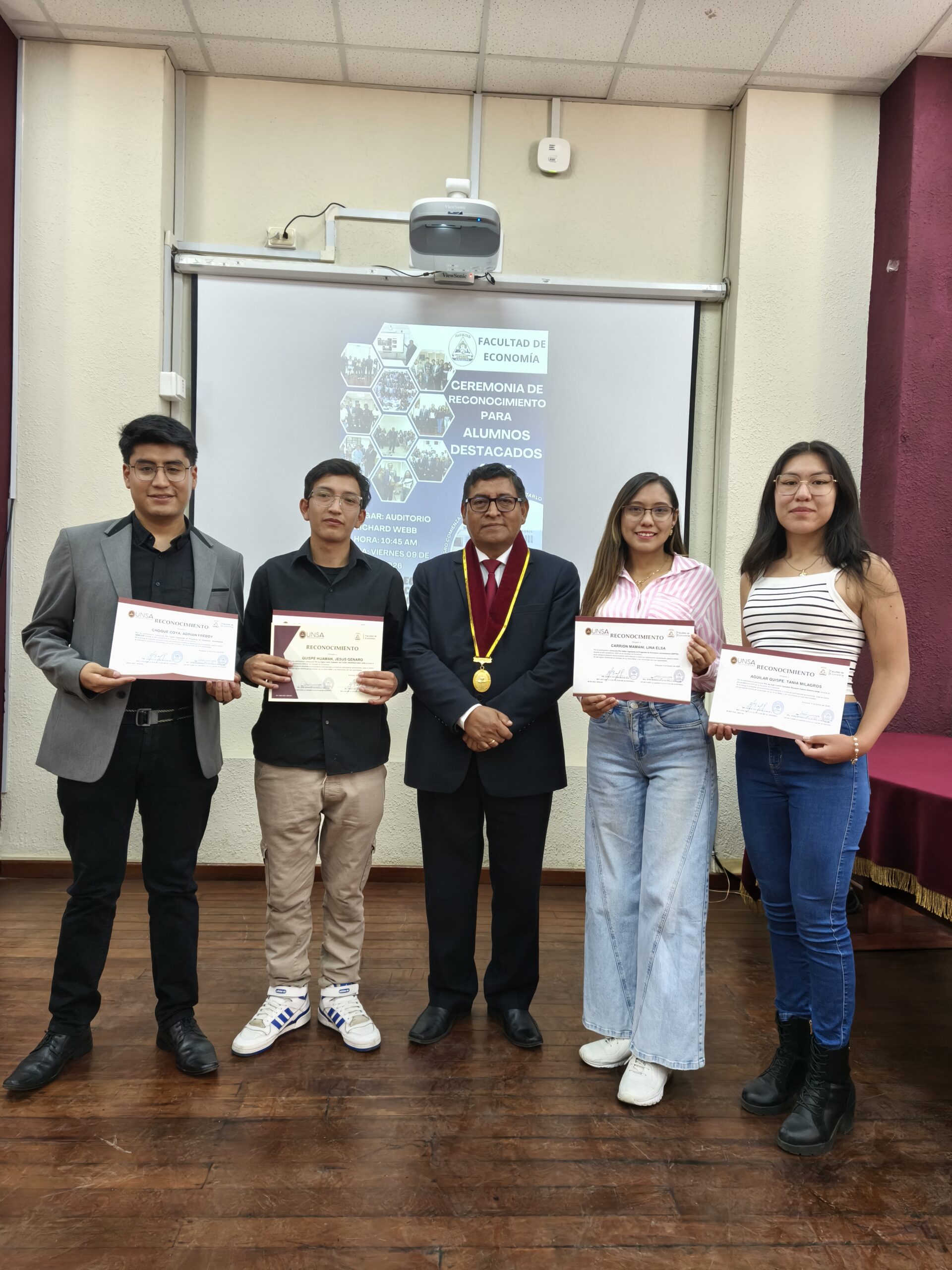 El desempeño académico y la participación activa en la vida universitaria fueron el eje de la ceremonia de reconocimiento a los estudiantes destacados de la Facultad de Economía, realizada por segundo año consecutivo como parte de su compromiso con los estándares de acreditación internacional del Consejo Interinstitucional para la Evaluación de la Educación Superior (CIEES).