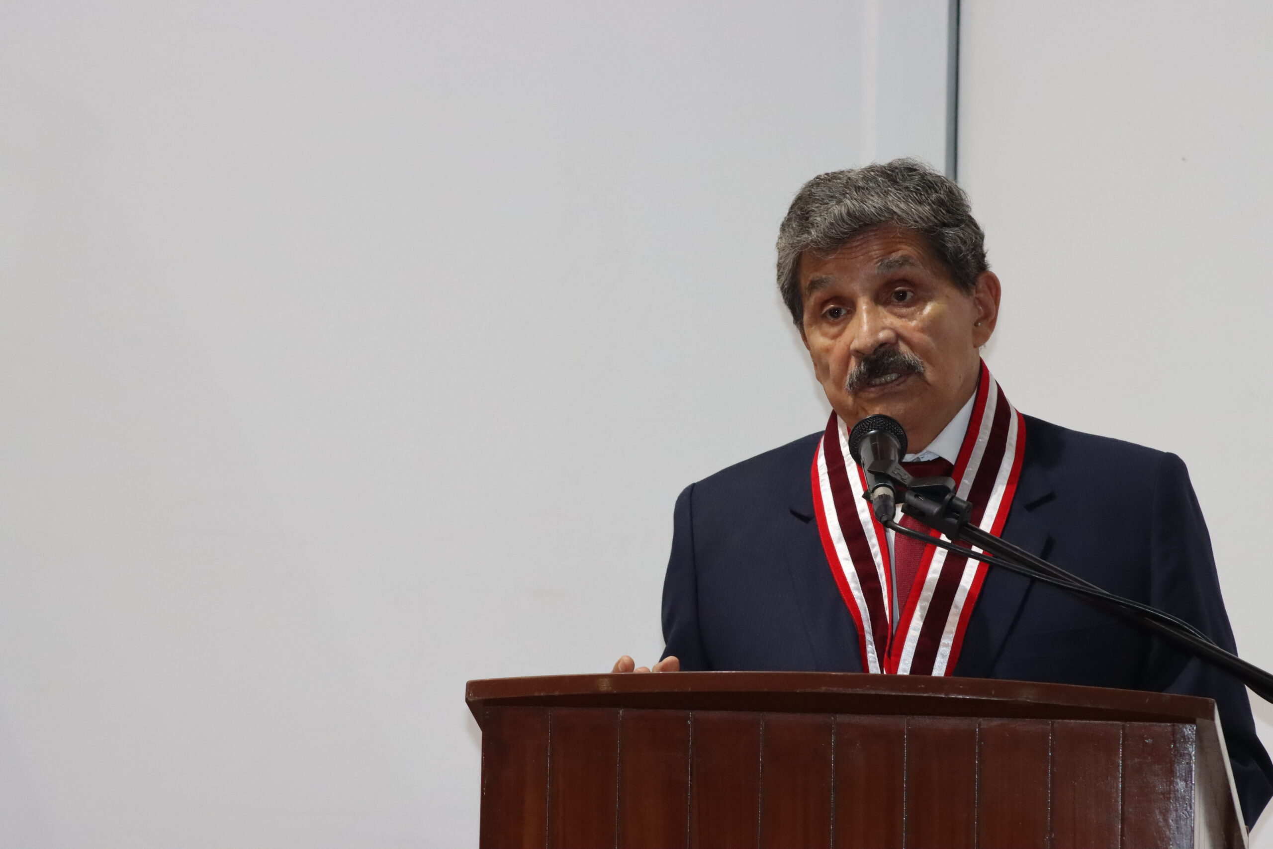 Estuvieron en la mesa de honor el rector, Dr. Hugo Rojas Flores; el vicerrector académico, Dr. Luis Cuadros Paz; el vicerrector de investigación, Dr. Henry Polanco Cornejo; la secretaria general, Dra. Ruth Chirinos Lazo y la directora de Desarrollo Estudiantil, Dra. Jeannette Bengoa Lazarte.