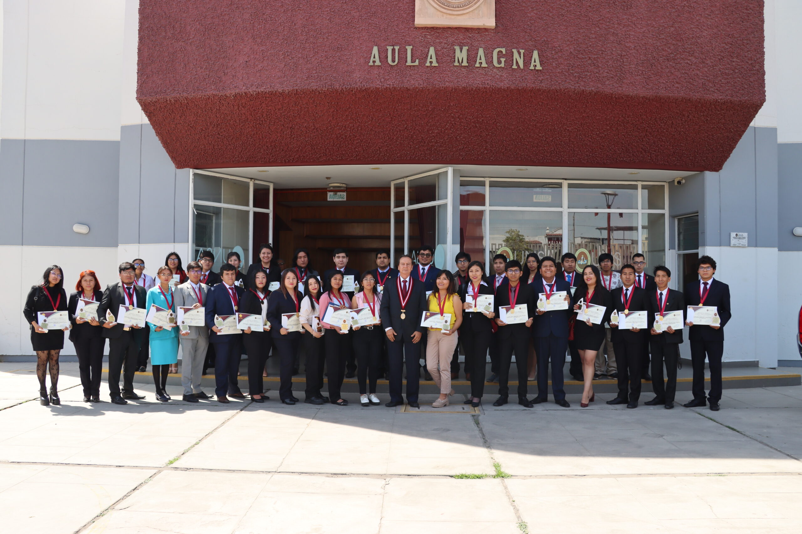 Un reconocimiento por su esfuerzo, dedicación y ejemplo de excelencia educativa, recibieron los primeros puestos de 47 carreras profesionales de la Universidad Nacional de San Agustín de Arequipa (UNSA). La ceremonia tuvo lugar en el Aula Magna Simón Bolívar del área de Biomédicas el último jueves 25 de abril.