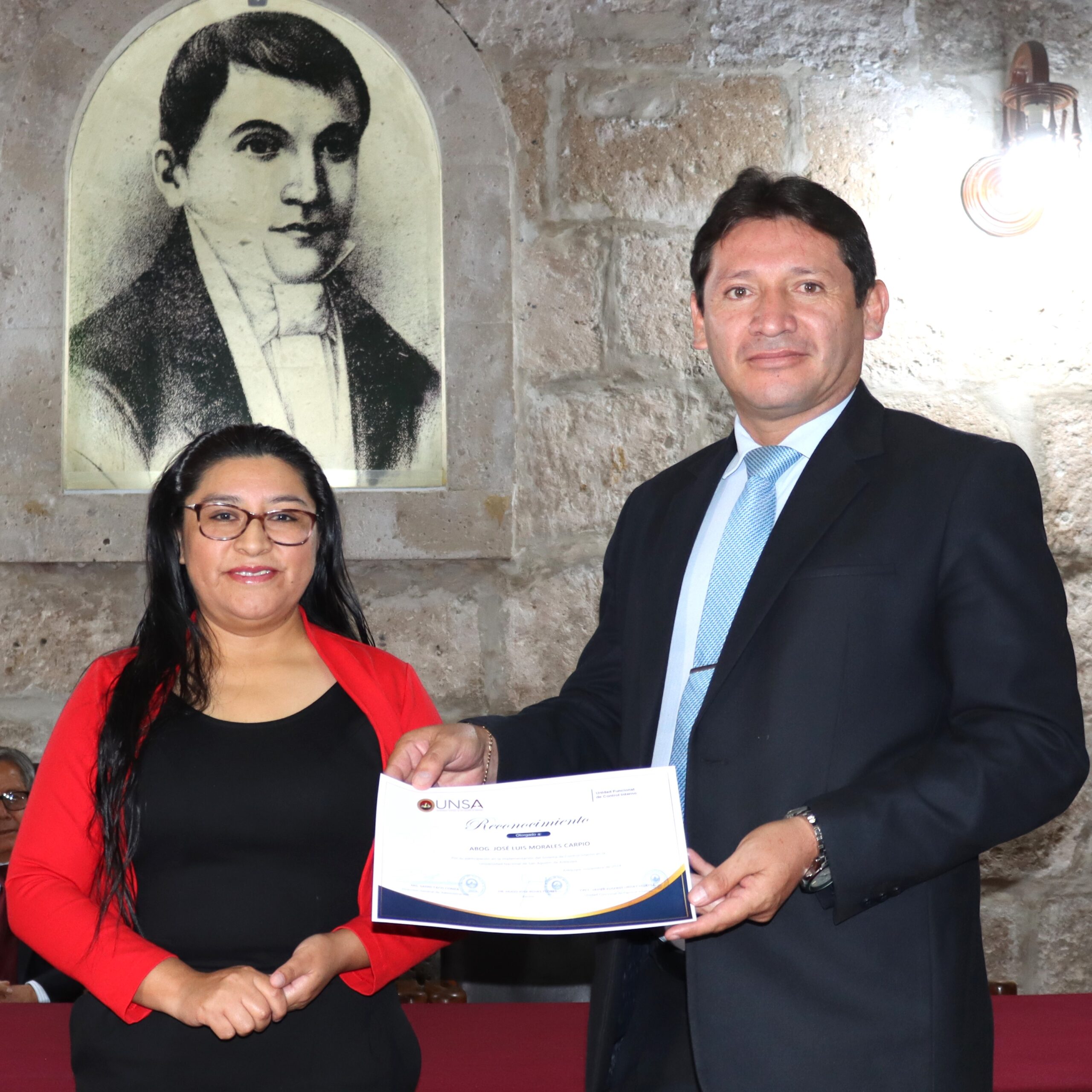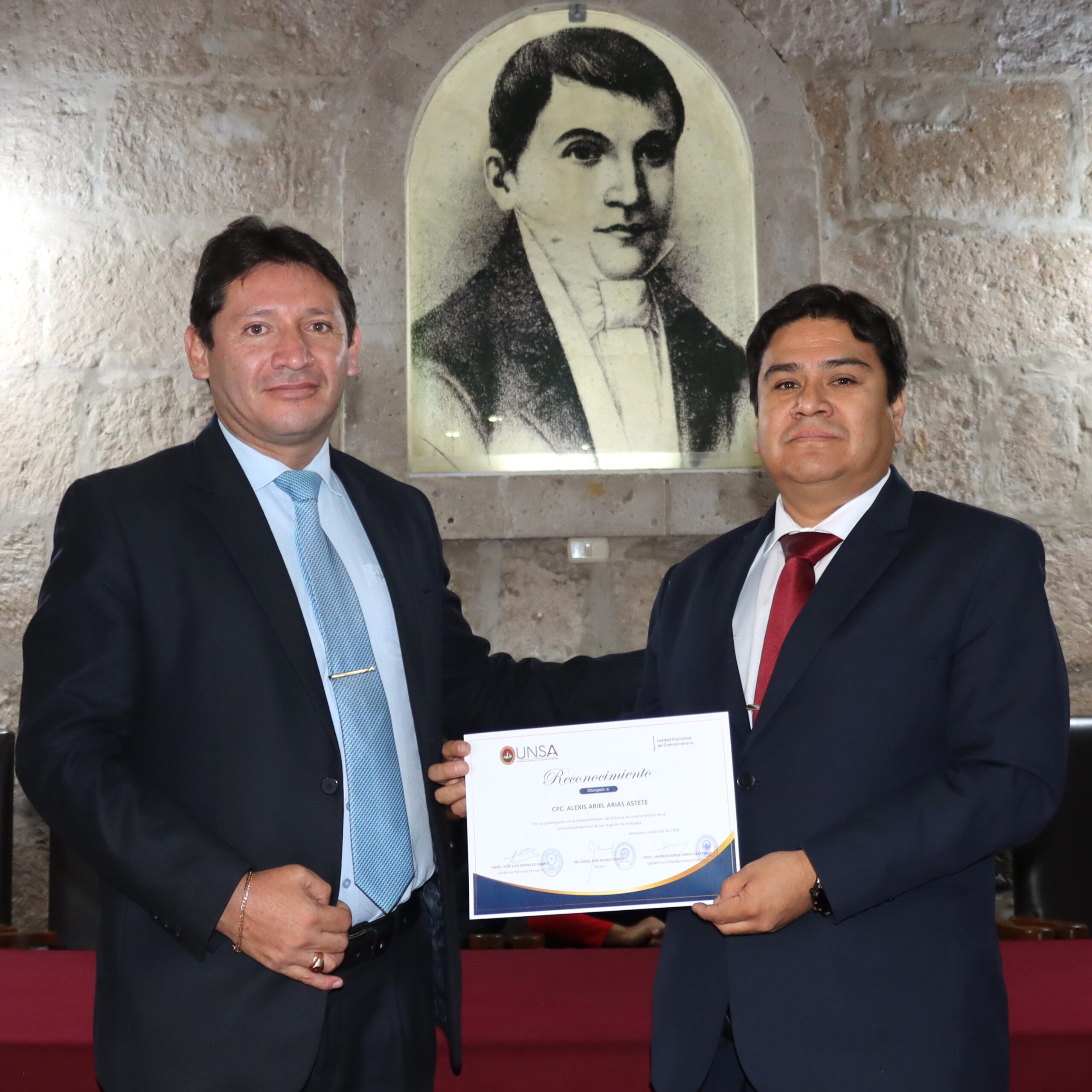 Durante la ceremonia, la Mg. Sadid Taco Conza, directora General de Administración (DIGA) de la UNSA, y el CPCC Javier Urday Huayta, coordinador de la Unidad Funcional de Control Interno de la UNSA, destacaron el esfuerzo continuo y la dedicación de ambos servidores para cumplir con la normatividad vigente y garantizar la transparencia en la gestión.