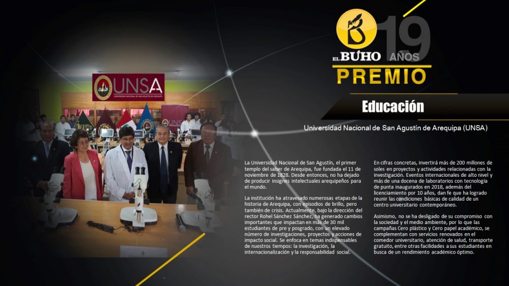 La revista “El Búho” reconoció a la Universidad Nacional de San Agustín de Arequipa, por el gran aporte a la Educación que realiza en los últimos años.