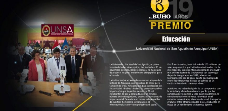 La revista “El Búho” reconoció a la Universidad Nacional de San Agustín de Arequipa, por el gran aporte a la Educación que realiza en los últimos años.