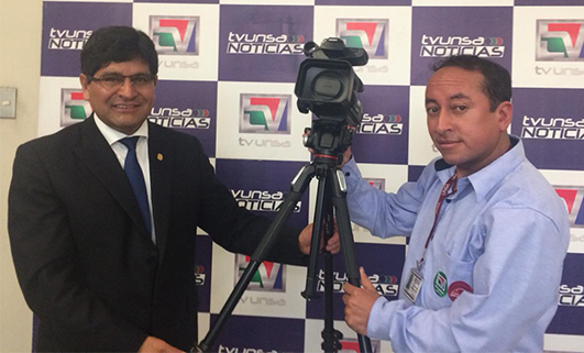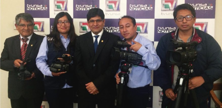De la misma manera y continuando con su política de mejorar la producción y el trabajo que viene realizando TV UNSA, la máxima autoridad del claustro agustino, entregó nuevos y modernos equipos a esta casa televisora, el canal oficial de la universidad.