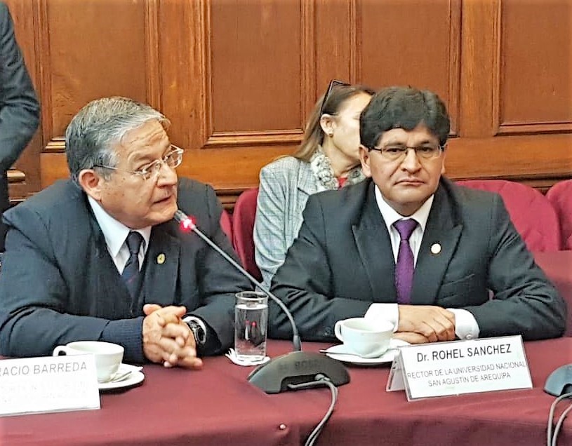El Dr. Rohel Sánchez Sánchez, Rector de la Universidad Nacional de San Agustín de Arequipa (UNSA) y el Dr. Tomás Díaz de la Rubia, Presidente Ejecutivo del Discovery Park de la Universidad de Purdue Indiana – EE. UU., presentaron a la Comisión de Ciencia, Innovación y Tecnología del Congreso de la República, proyectos para resolver la problemática del agua, suelo, energía y medio ambiente de la Región Sur.