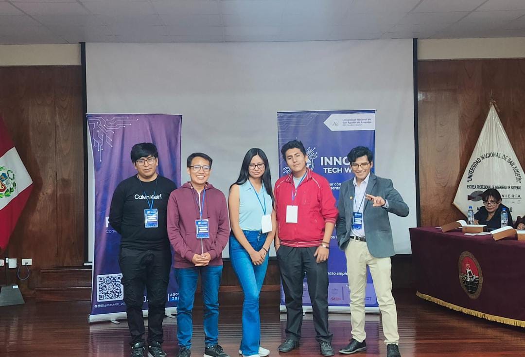 Innova Tech Week fue liderado por Sharon Condori, directora del proyecto y presidenta del capítulo IEEE WIE UNSA (Women in Engineering), junto a un equipo de estudiantes organizadores compuesto por Geraldine Umasi, Saúl Sivincha, María Ezcurra (Ingeniería de Sistemas) y André Corrales (Ingeniería Mecánica). La iniciativa contó con colaboración interuniversitaria con capítulos IEEE de la UCSM, UCSP, RAS UCSM y ASME UNSA, además del apoyo de JAKU Emprende, la incubadora de la UNSA.