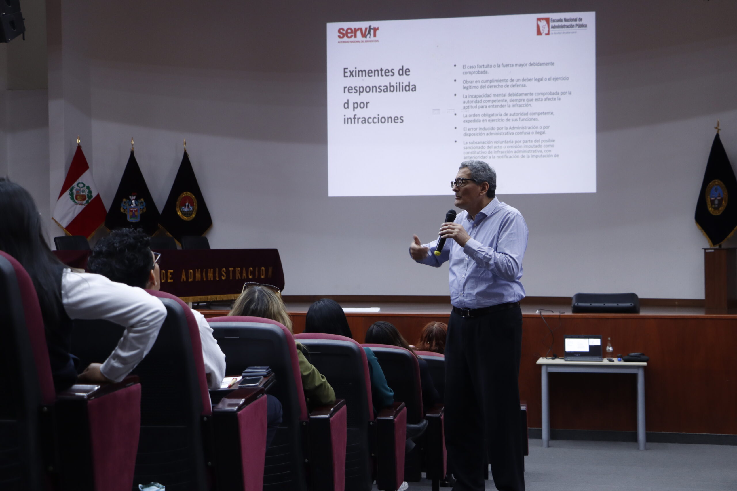 El programa también incorpora sesiones especializadas vinculadas a la atención de poblaciones vulnerables, a cargo de la Dirección de Personas Adultas Mayores del Ministerio de la Mujer y Poblaciones Vulnerables. Esta articulación permite que los participantes amplíen su comprensión sobre enfoques sociales y de servicio al ciudadano.