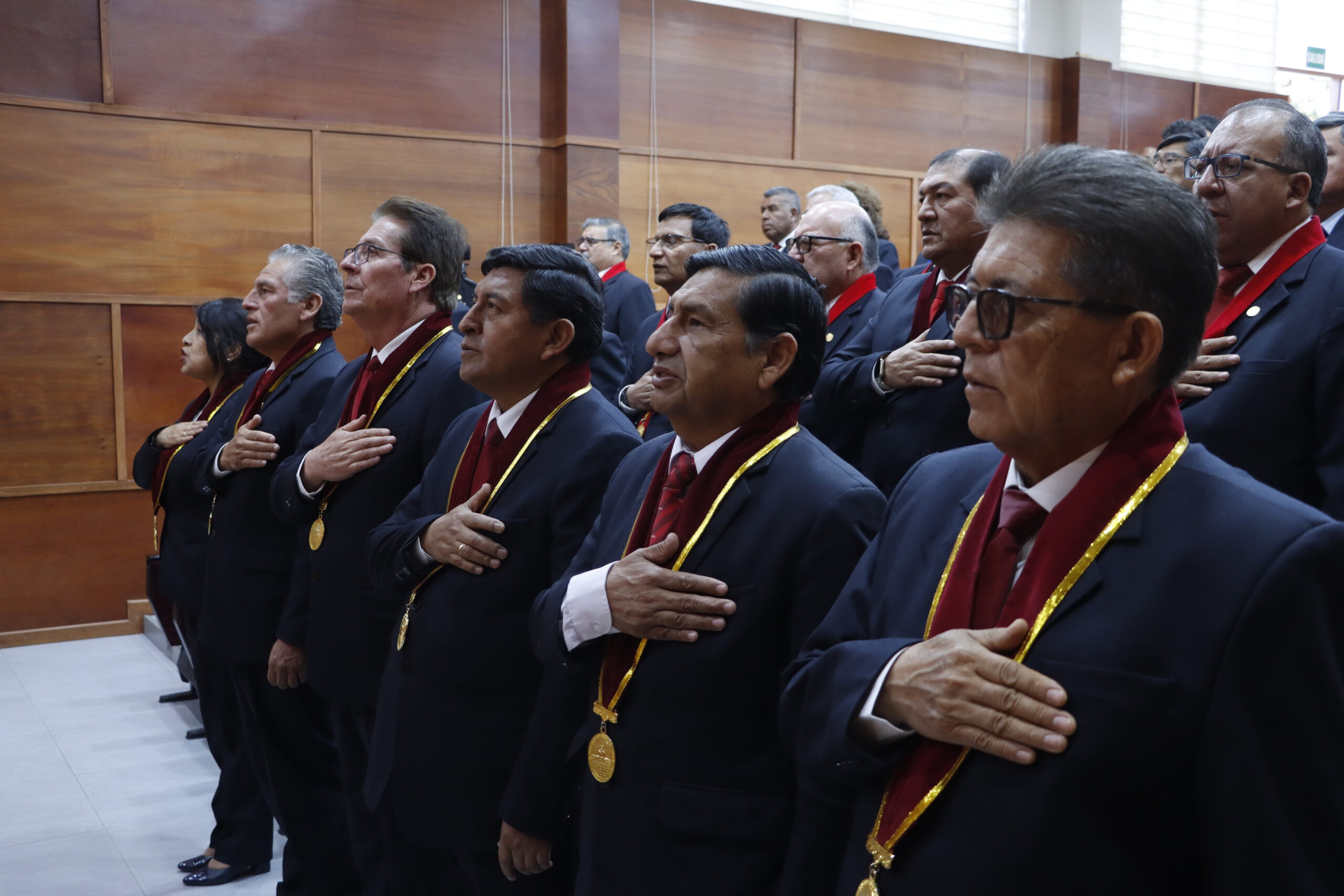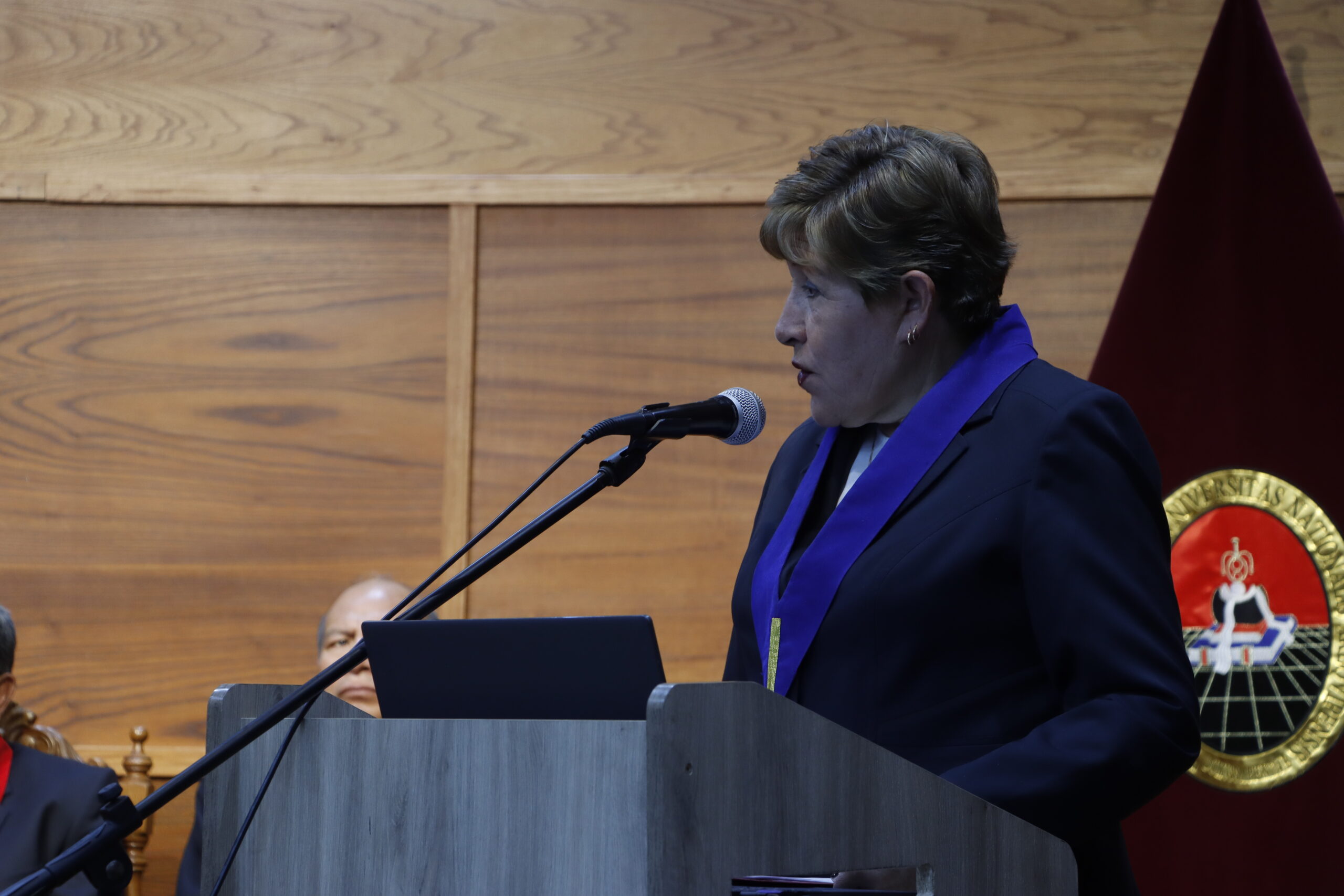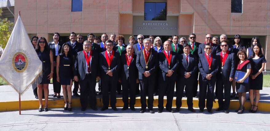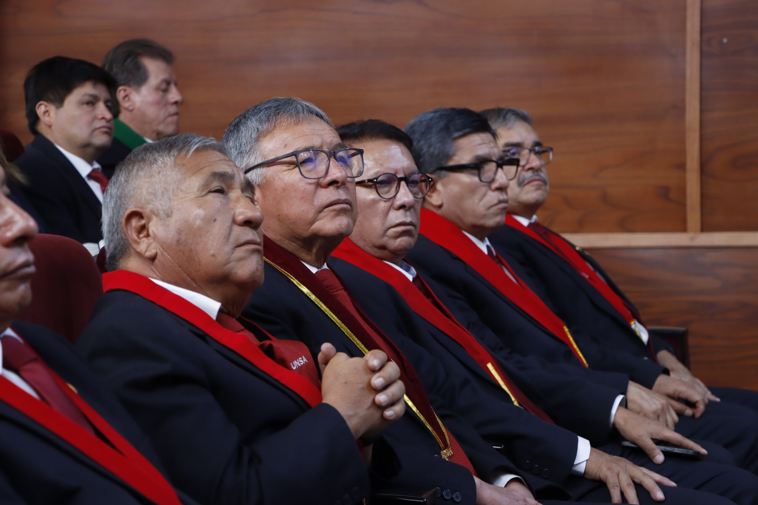 Participaron en la mesa de honor la secretaria general, Dra. Ruth Maritza Chirinos Lazo; la secretaria académica, Mgtr, Mirta Diaz Gonzales, quien dio lectura del acta de fundación de la Facultad; y el Dr. Jesús Hinojosa Ramos. También dio palabras el representante estudiantil, Edwar Chambi Condori.