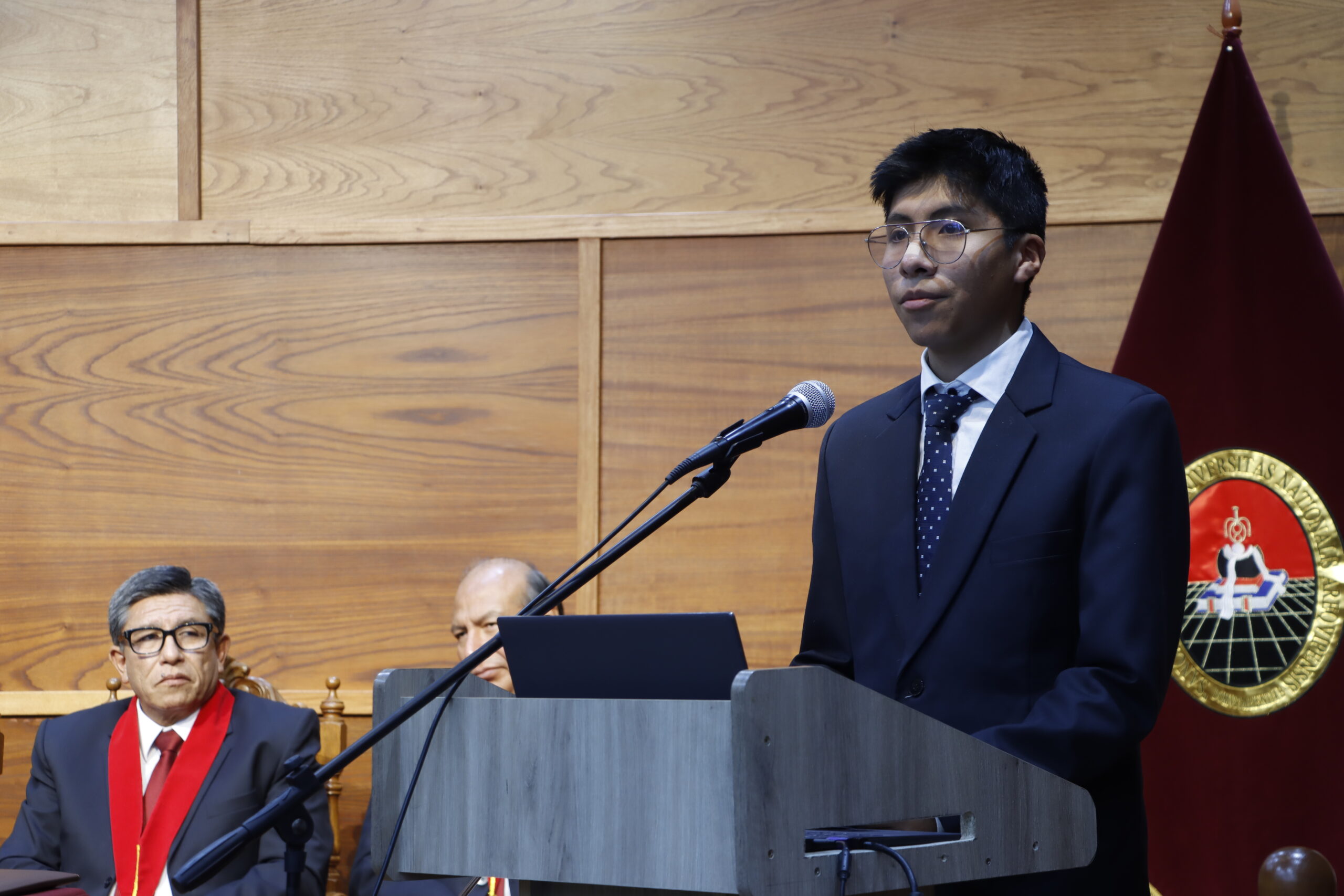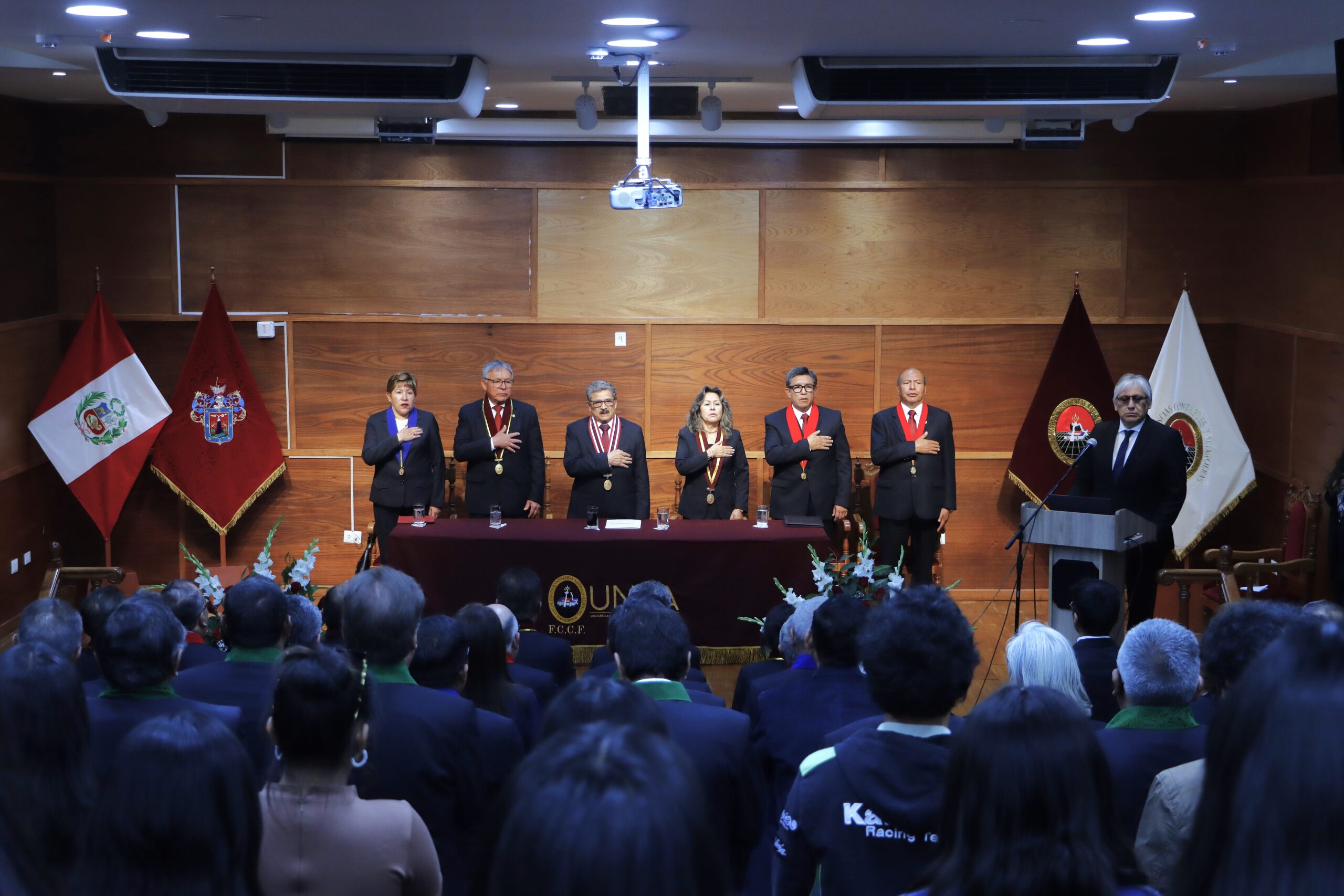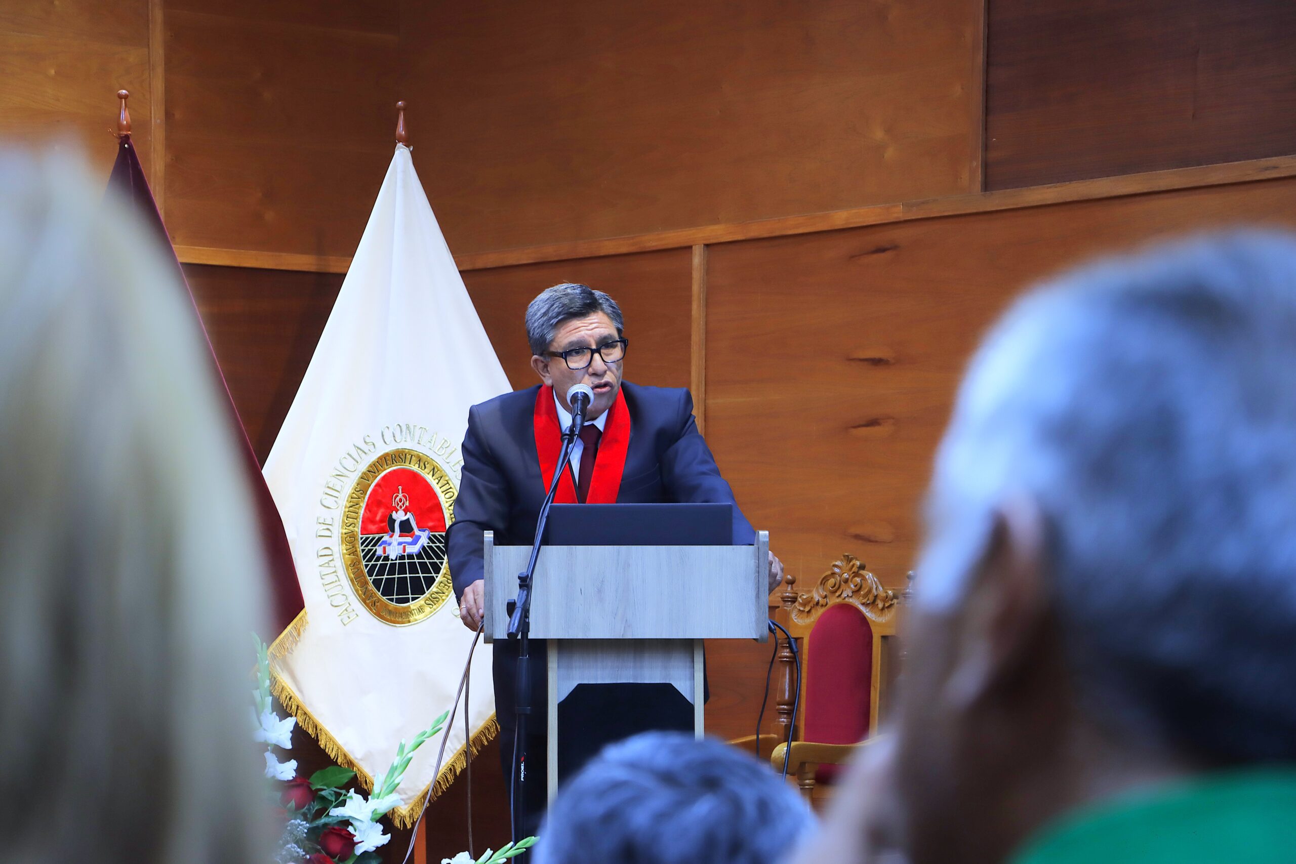 A su turno, el decano, Dr. Ronald Cuba Carpio, recordó que la facultad logró acreditación internacional de sus escuelas y modernización de su infraestructura, con laboratorios de cómputo y aulas equipadas. Agregó que la formación en inteligencia artificial será prioridad en la capacitación docente y estudiantil.