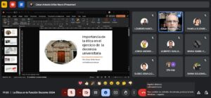 El Vicerrectorado Académico en coordinación con el Tribunal de Honor Universitario y la Dirección de Desarrollo Docente está organizando el “Curso de Ética de la Función Docente 2024”, a realizarse desde el día martes 17 de septiembre hasta el día martes 22 de octubre del presente, desde las 19:00 a 21:00 horas, los días martes y jueves en un total de once sesiones, y que tiene por finalidad lograr su mejor desempeño basado en la Ética, los valores, principios y deberes que garantizan el profesionalismo y la eficacia en el ejercicio de la formación de nuestros estudiantes.