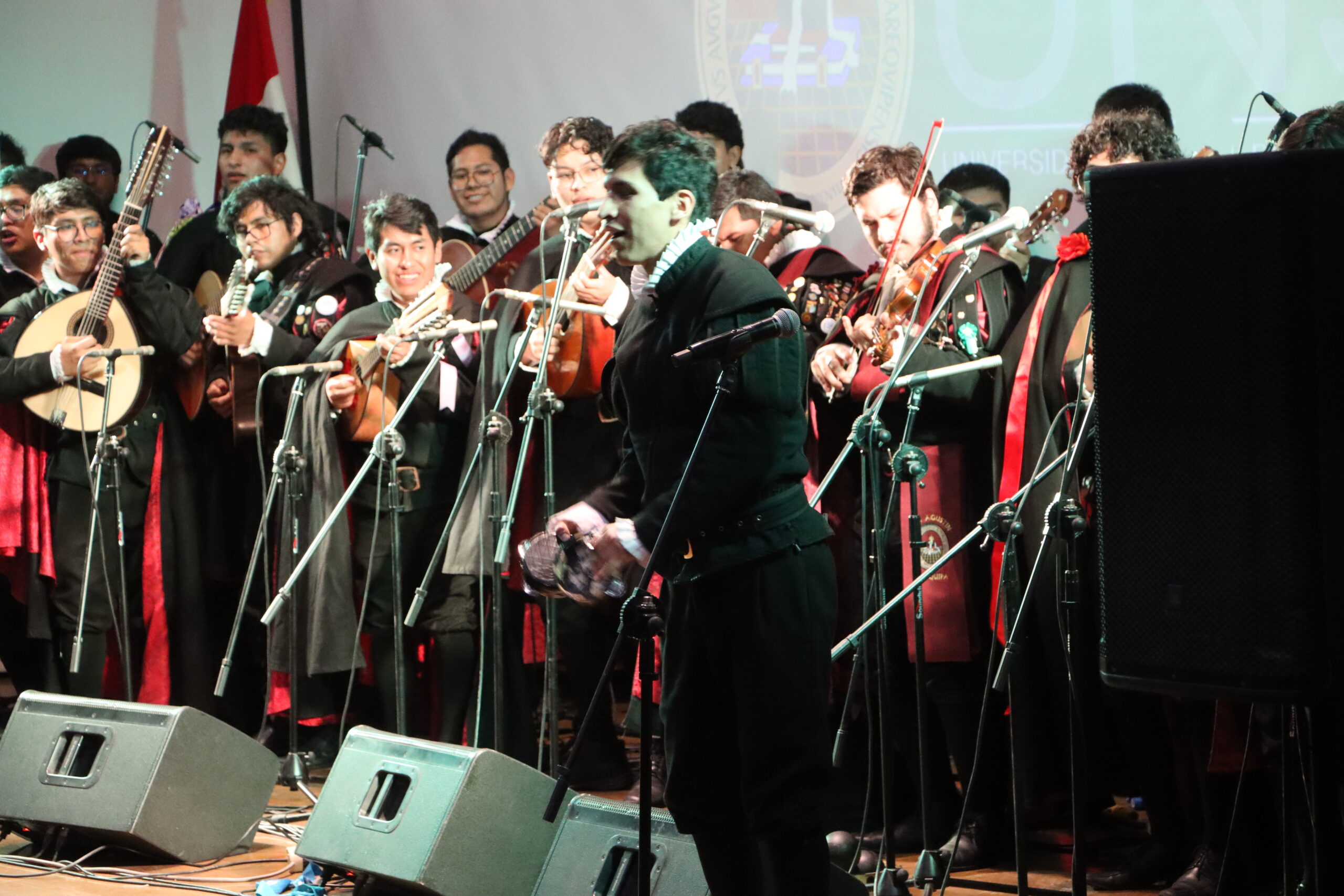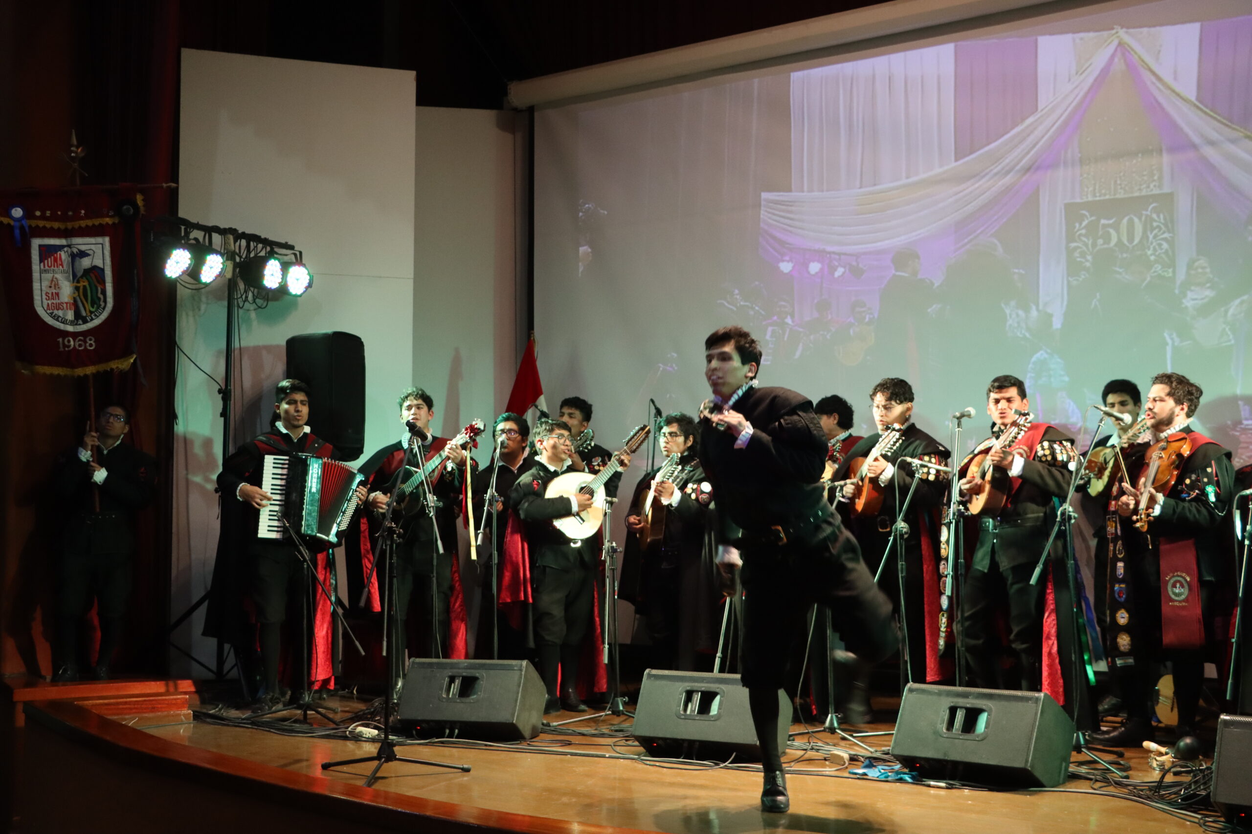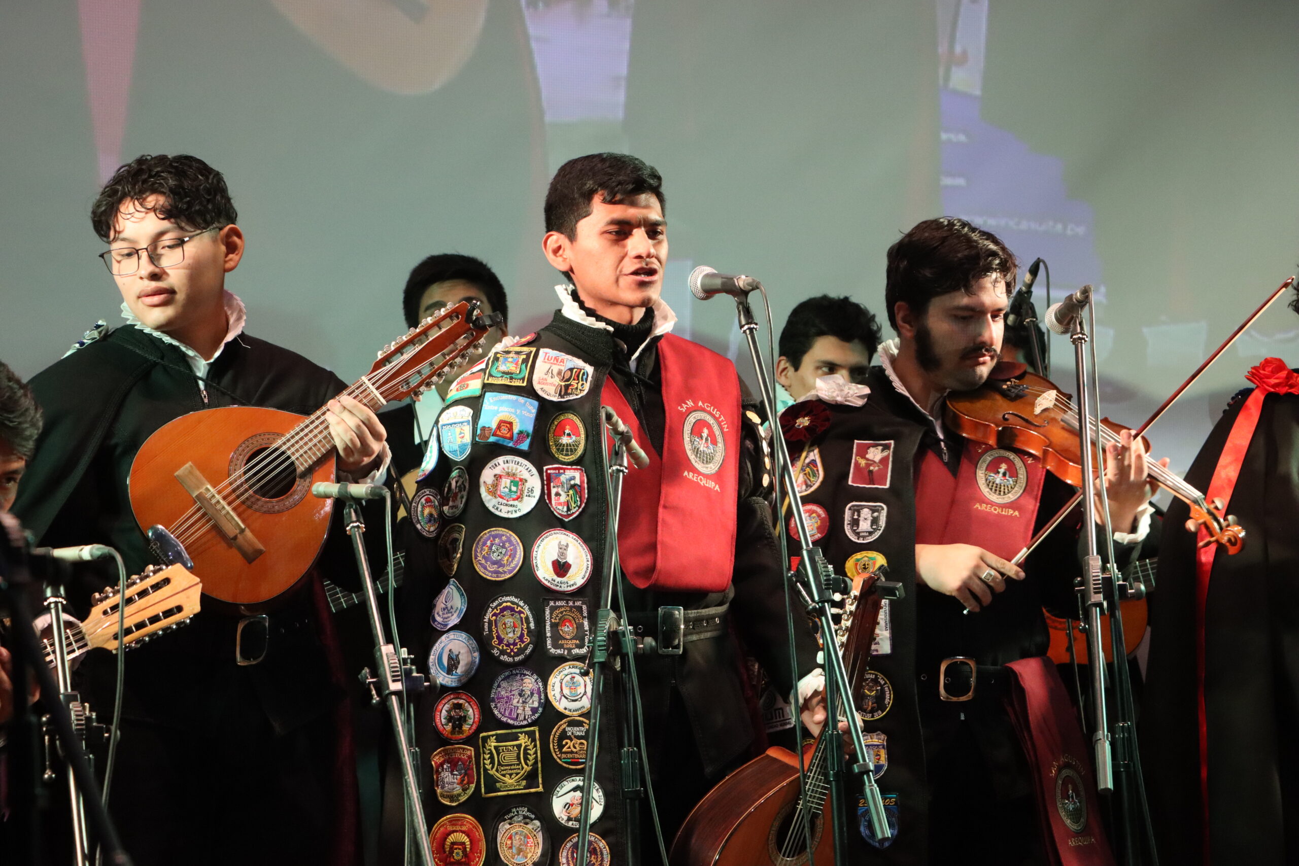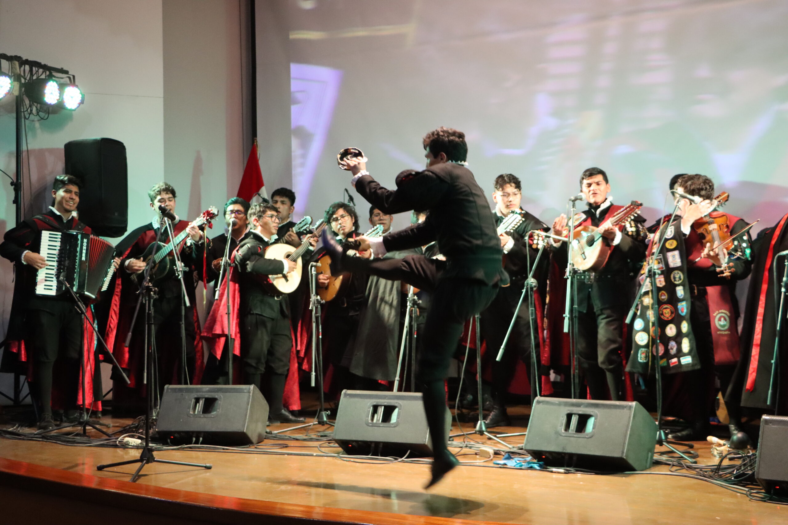 El programa del concierto incluyó un repertorio variado que abarcó desde pasodobles y joropos venezolanos hasta danzas rusas y huaylash. No faltaron los clásicos del folclore mexicano y arequipeño, así como bambucos colombianos y taquiraris bolivianos. La noche culminó con la tradicional interpretación de «Clavelitos», un vals de ronda que invitó a los antiguos tunos a unirse en el escenario.