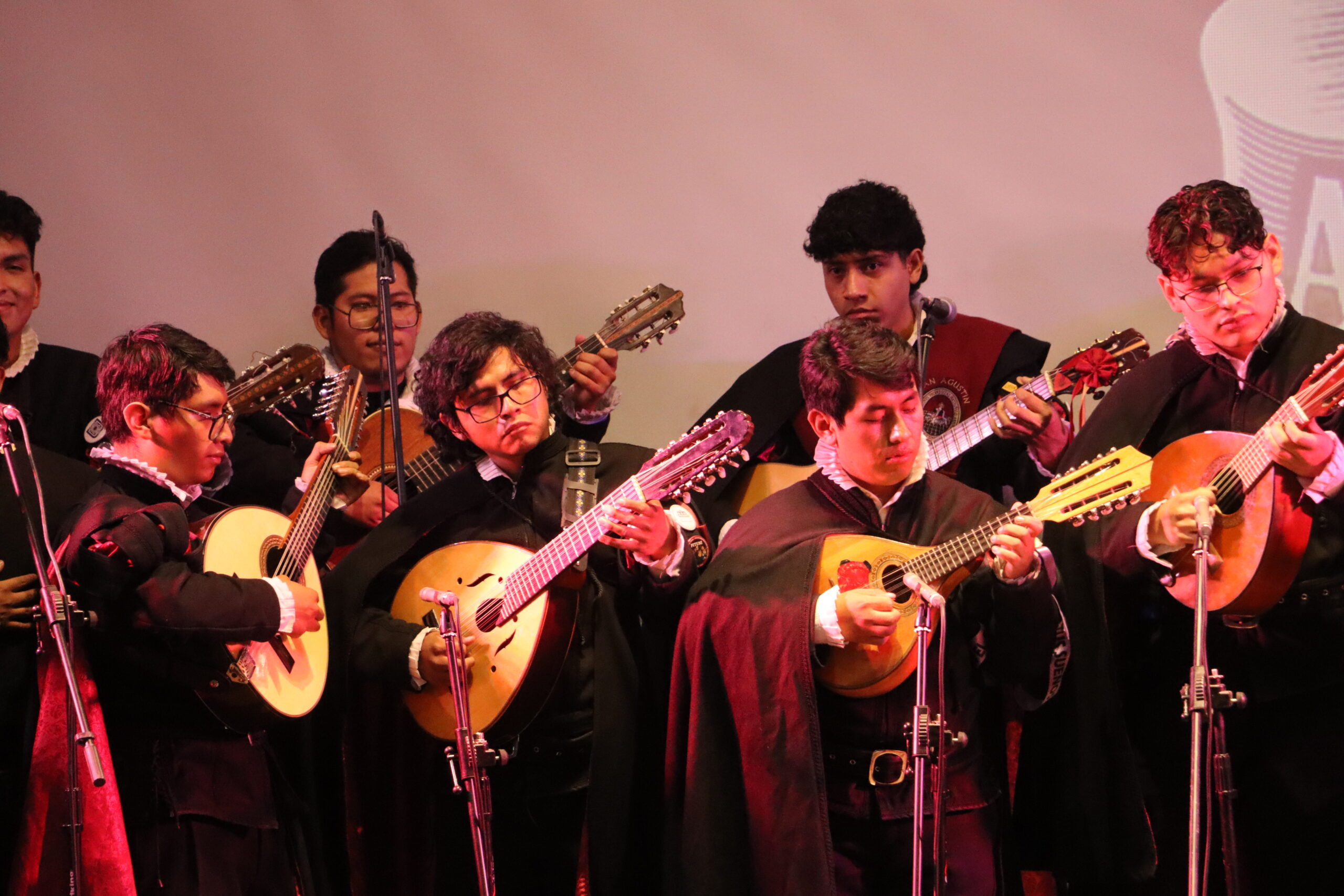 Más de 200 personas se congregaron en el aula magna Simón Bolívar para celebrar el 57° aniversario de la Tuna Universitaria San Agustín. El concierto de gala ofreció un recorrido sonoro por diversos parajes del mundo, al compás de guitarras, mandolinas, laúdes, instrumentos de viento y percusión.