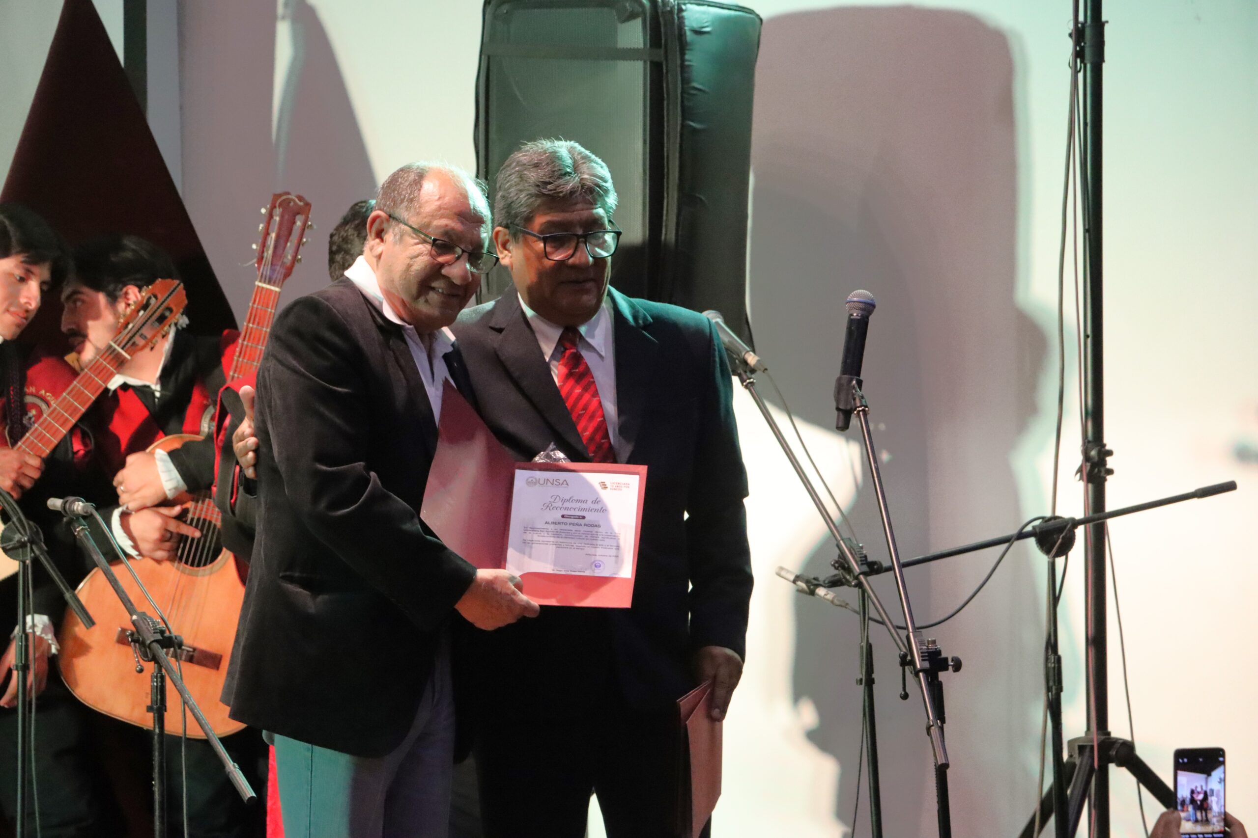Un momento especialmente emotivo fue el reconocimiento al director musical, el profesor Leoncio Barrenechea Montesinos. Se le galardonó por su inestimable dedicación al desarrollo de los más de 160 músicos que han formado parte de la tuna a lo largo de cinco décadas.