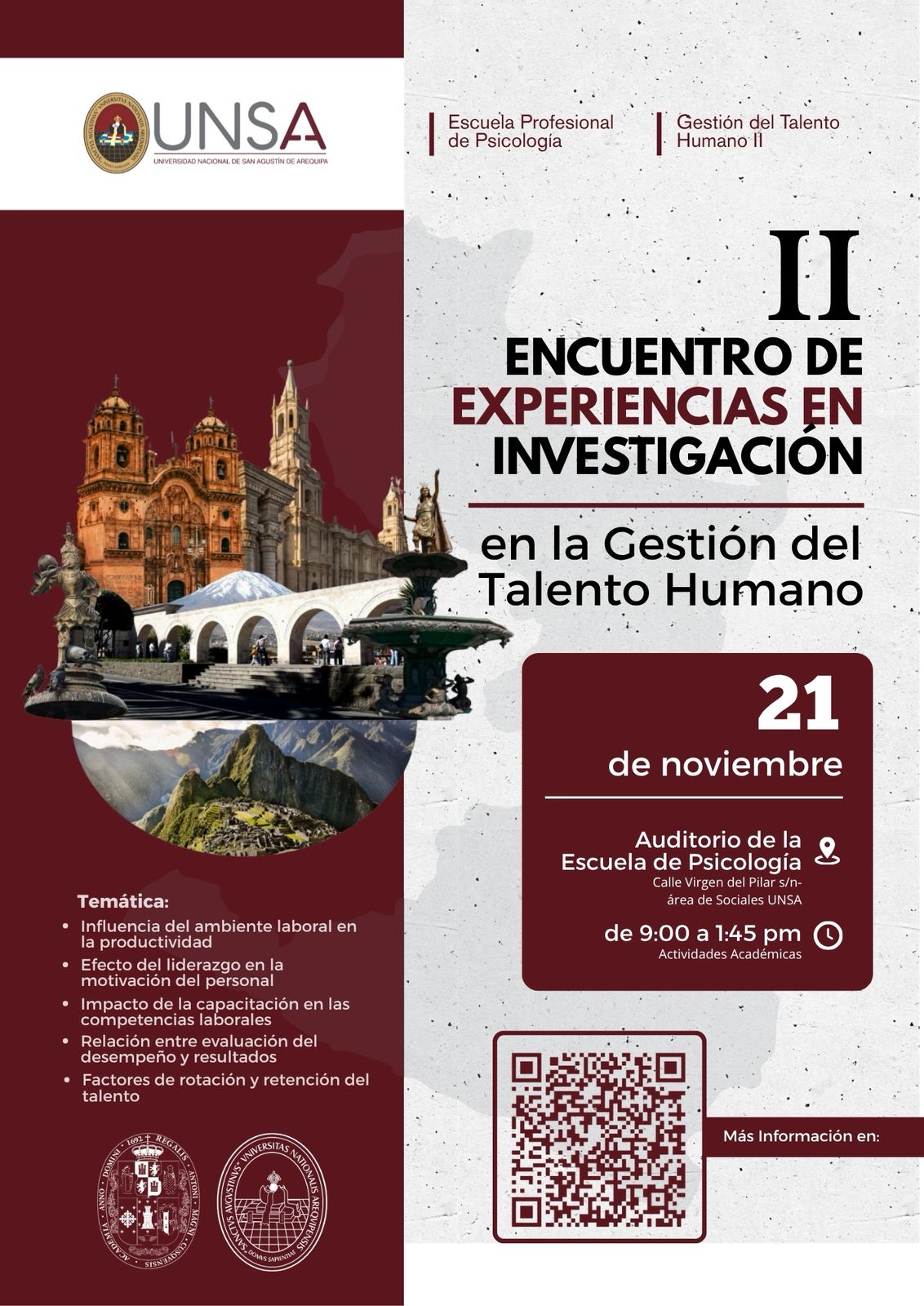 En una iniciativa que promete marcar un antes y un después en la formación de los futuros líderes en gestión del talento humano, la Universidad Nacional de San Agustín de Arequipa (UNSA) se prepara para recibir a estudiantes de la Universidad Nacional San Antonio Abad del Cusco (UNSAAC) este viernes 21 de noviembre. El «Encuentro de Experiencias en Gestión del Talento Humano», lejos de ser una mera formalidad académica, se erige como un crisol de ideas y prácticas que buscan redefinir el rol del psicólogo en el ámbito empresarial y social.