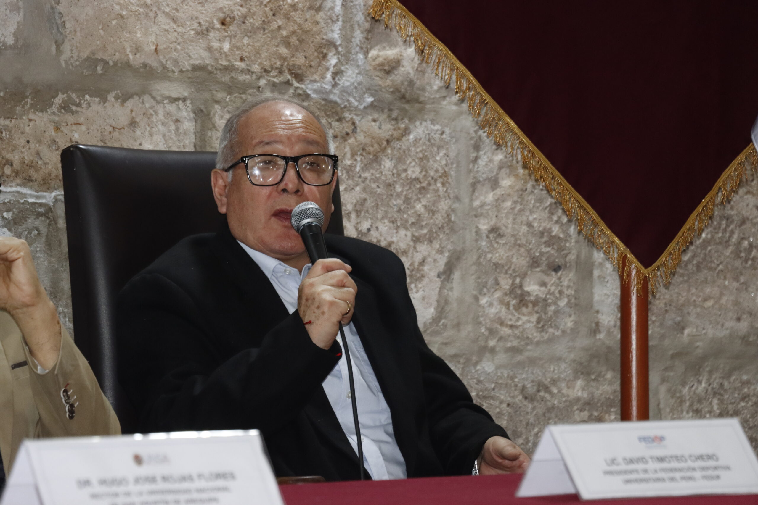 A su turno el gerente de Deportes de la FEDUP, Rudy Montero Quispe, destacó que se vienen eventos importantes de nivel nacional e internacional, que tienen como punto de partida la Universiada 2024. Agradeció el apoyo de la universidad y todas las entidades que apoyarán con escenarios para las competencias.